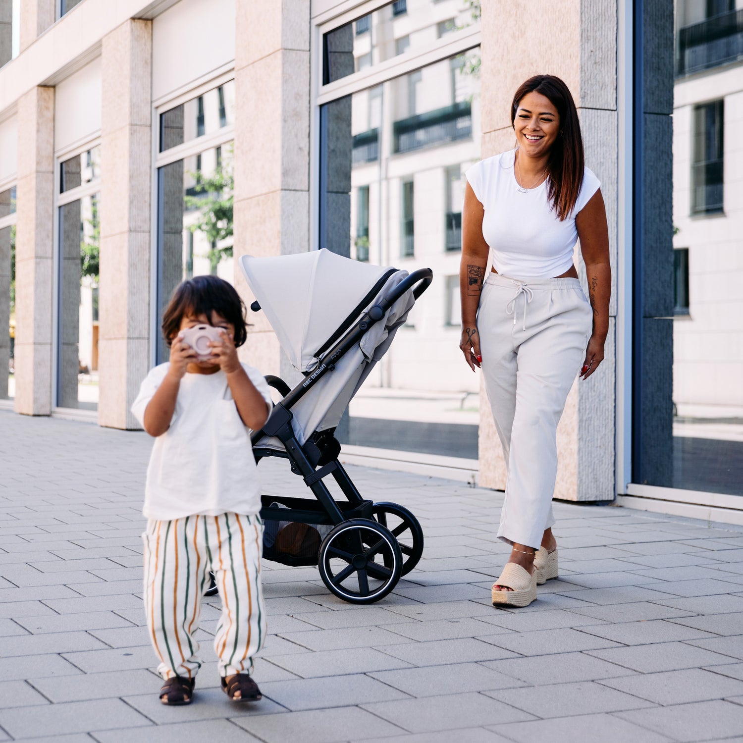 The Avus pushchair has large wheels and an integrated suspension system, ensuring a smooth ride both on city streets and off-road. And with the one-handed fold and transport lock, it makes a handy travel companion.