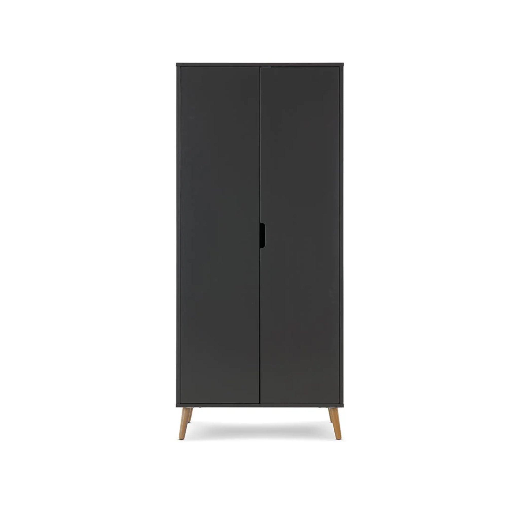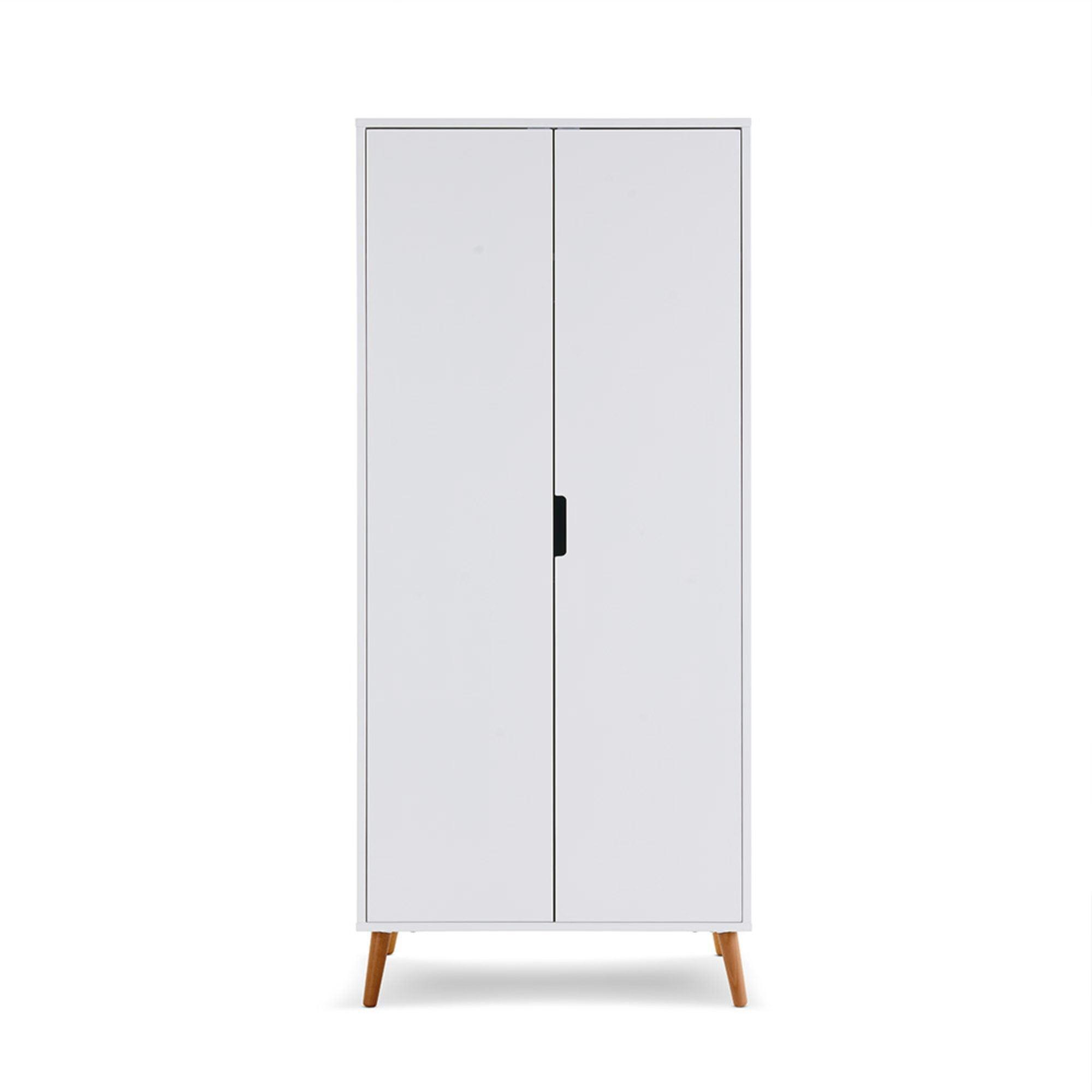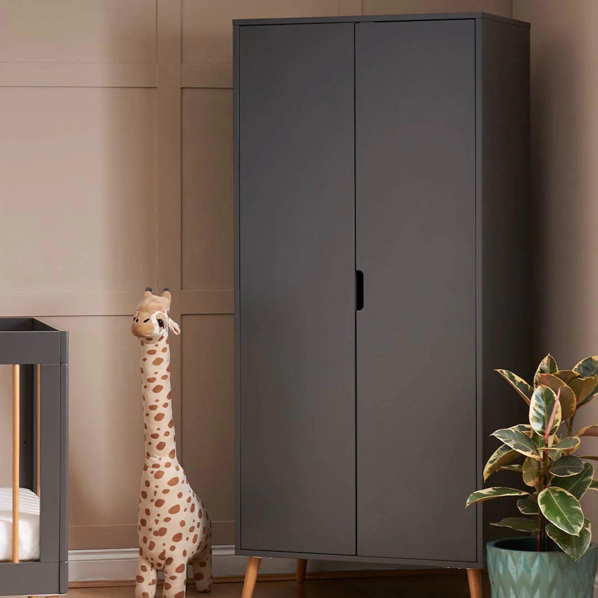 The Obaby Maya double wardrobe draws inspiration from Scandinavian design, showcasing a clean-cut finish and a two-tone colorway. It offers the ideal storage solution for your little one's clothes, with a large cupboard space fronted by double soft-close doors with recessed handles, two internal hanging rails, and a single full-width shelf.