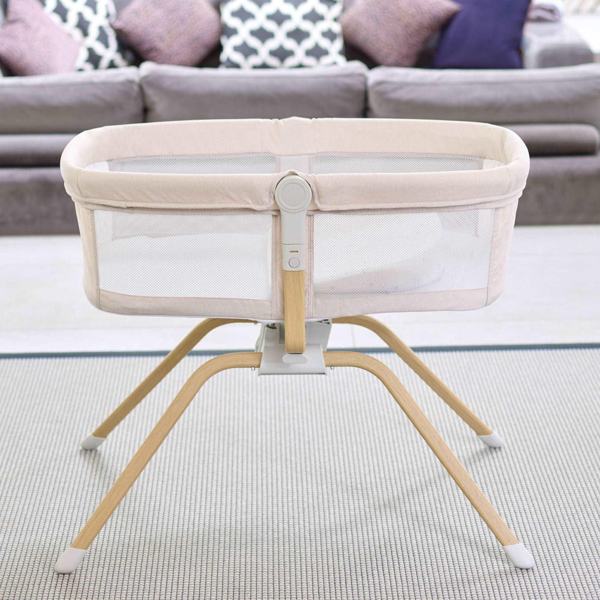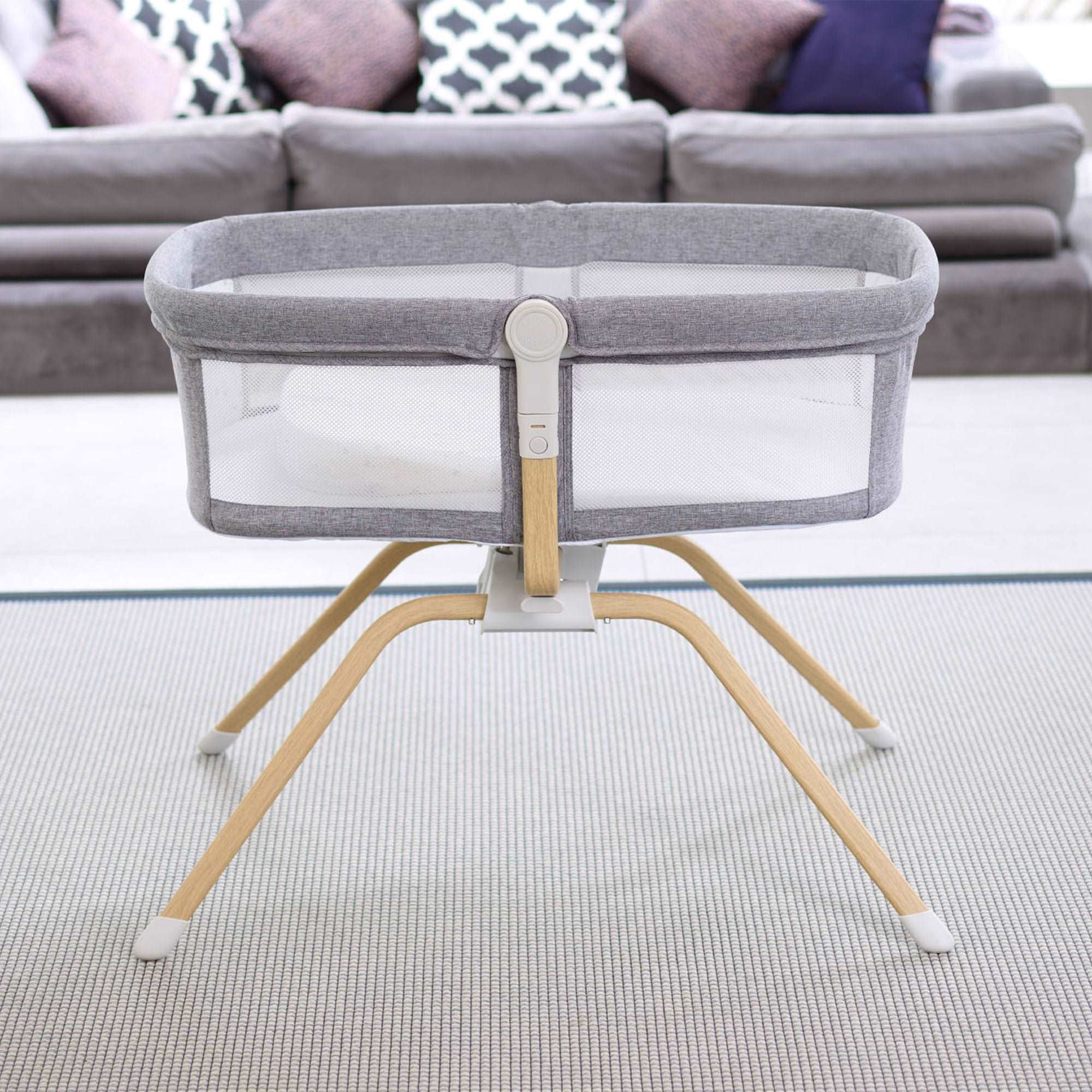 The Babymore Air Motion gliding crib is easy to use and nicely made. Additionally, its gentle and quiet gliding motion helps calm your baby to sleep. Parents can control the gliding motion, and it automatically starts when the baby moves, helping them drift back to sleep. If needed, you can also lock the crib to stop it from gliding.