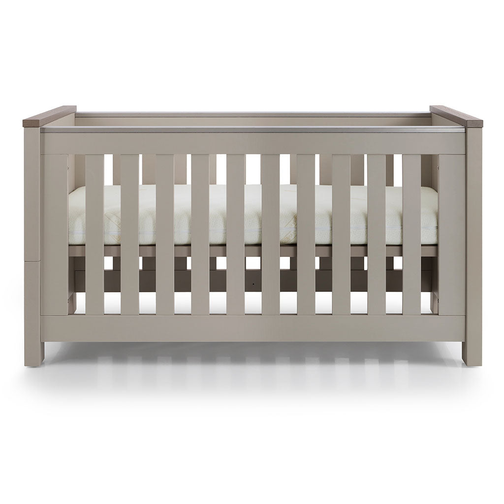 The Bordeaux Oatmeal cot bed offers a 3 - position base, teething rail and effortlessly adapts from a cosy newborn crib to a stylish toddler bed, ensuring longevity beyond the early years.