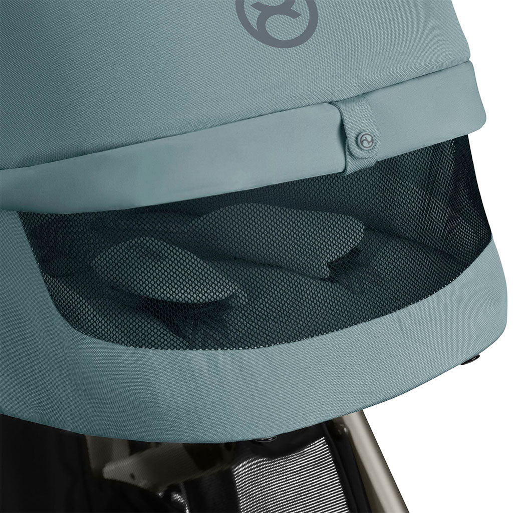 An XXL sun canopy and wind stopper deliver 360 degrees of reliable protection from harsh outdoor weather conditions.
