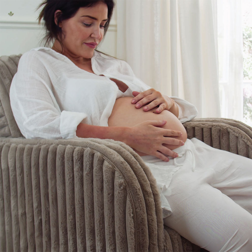 Wrapped in beautifully soft faux fur, Etta feels instantly soothing. The Cream tone brings a light, airy warmth to the room, gently lifting the space and creating a sense of calm from the very first sit. The deep seat and softly curved shape support you naturally as you feed, rock or cuddle, while the carefully positioned armrests offer gentle support during longer moments together.