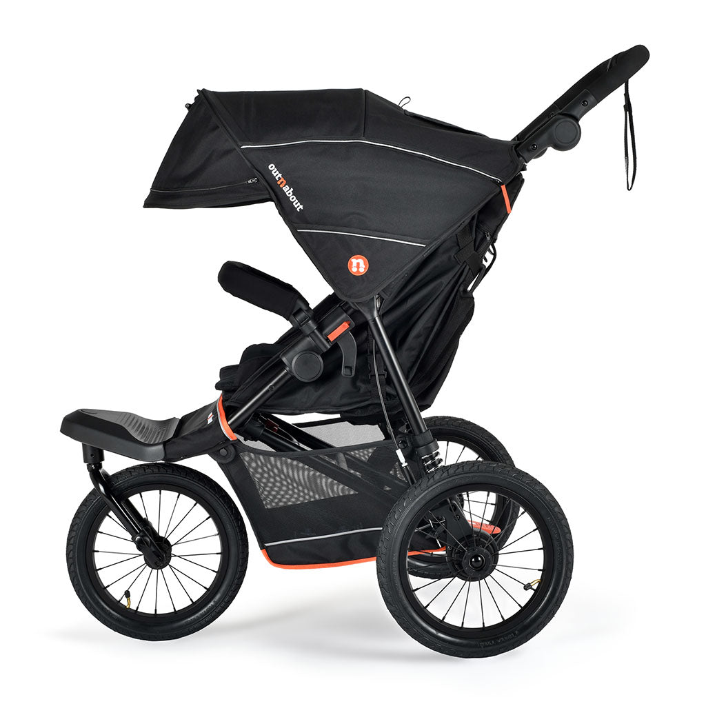 The Nipper V6 Plus pushchair is the ultimate all-terrain buggy from Out’n’About. Built for real family life from newborn to toddler, it combines a lightweight aluminium frame with 14” air-filled wheels and a handlebar-mounted brake for maximum control. These upgrades make it the first swivel wheel buggy to be certified for running* under the BS EN1888-3:2023 running standard – giving you confidence whether you’re tackling park runs, countryside trails, or the daily school run.