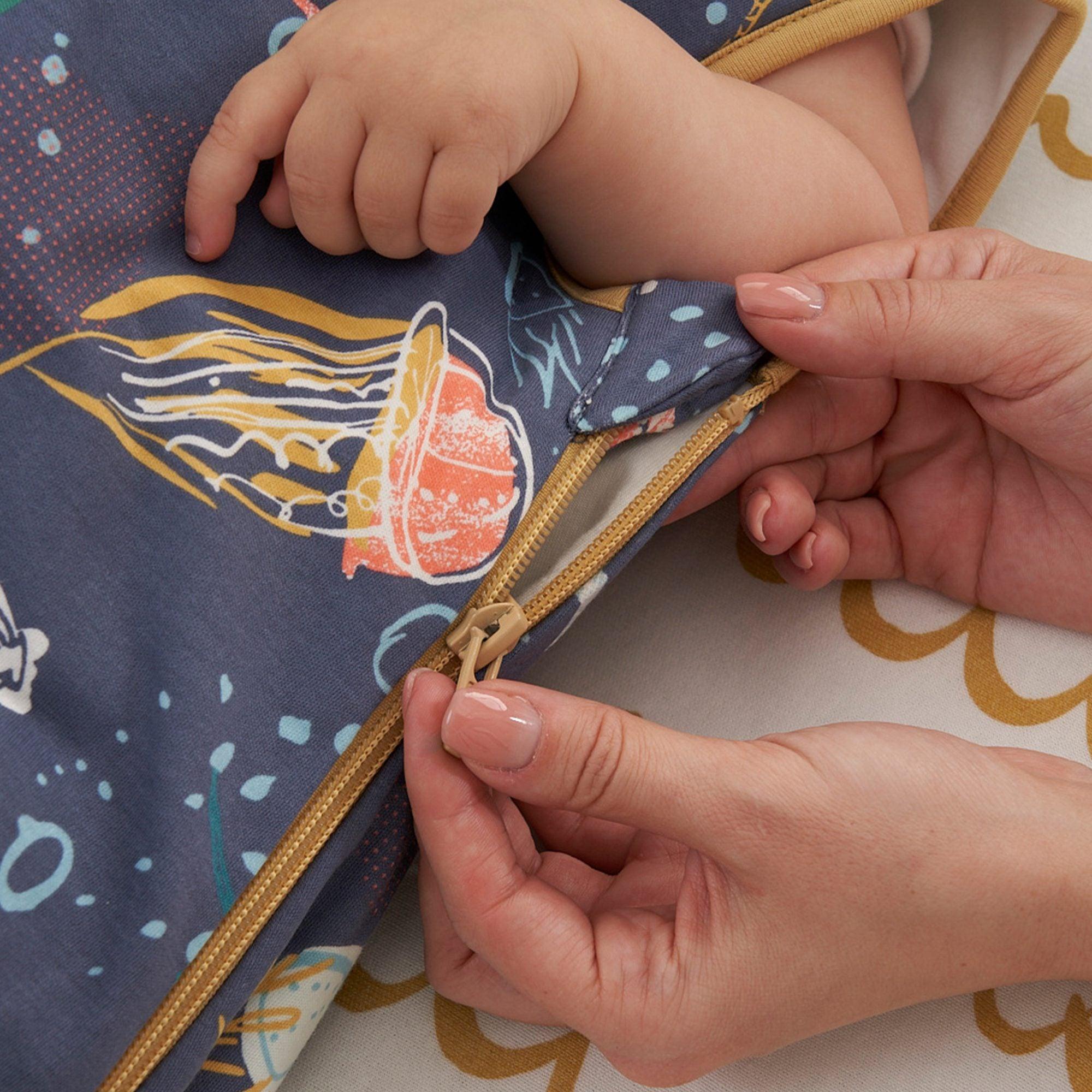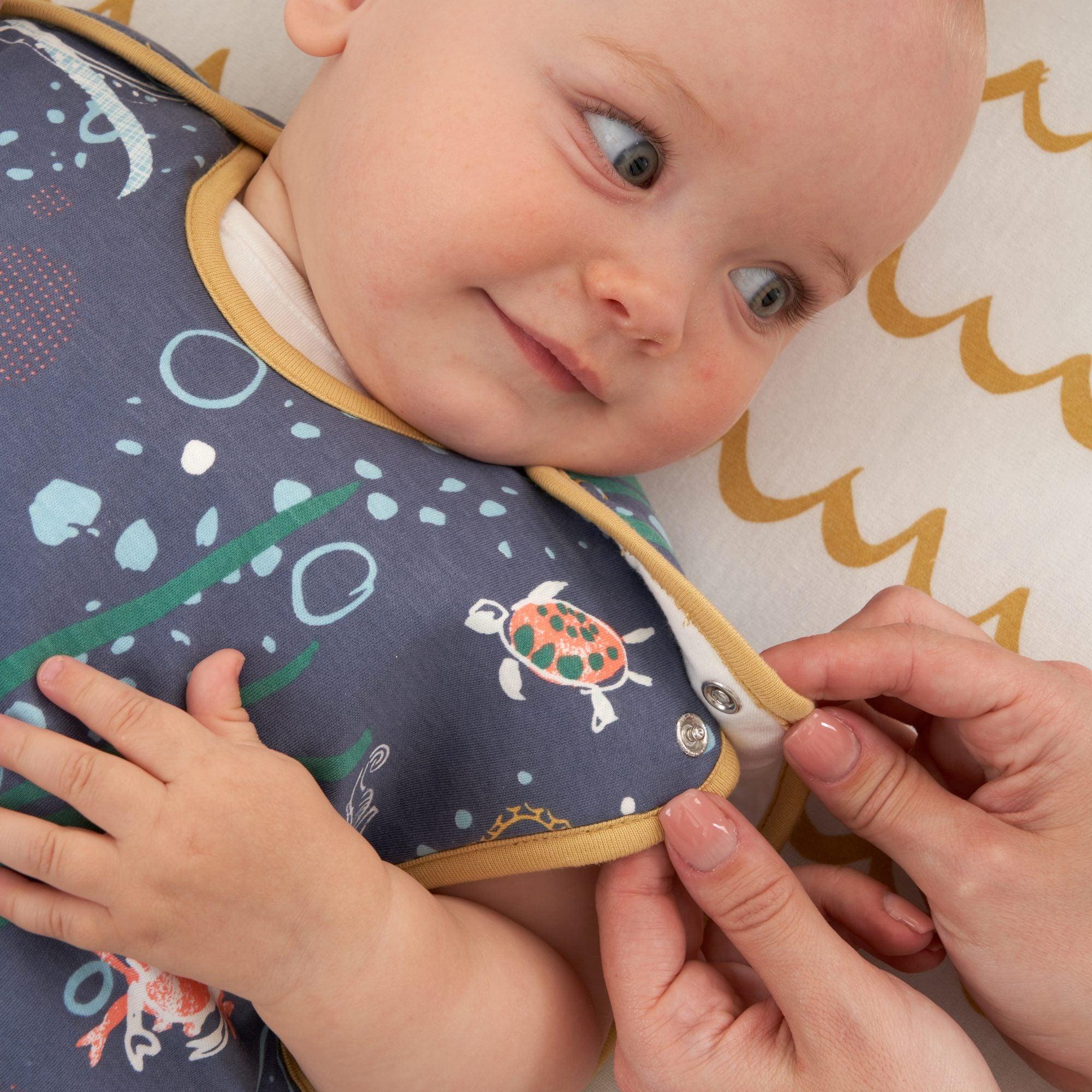 This design keeps the baby snug by preventing them from kicking off the covers at night. With a double popper system for added security, it ensures they stay in place and can't slip down inside.