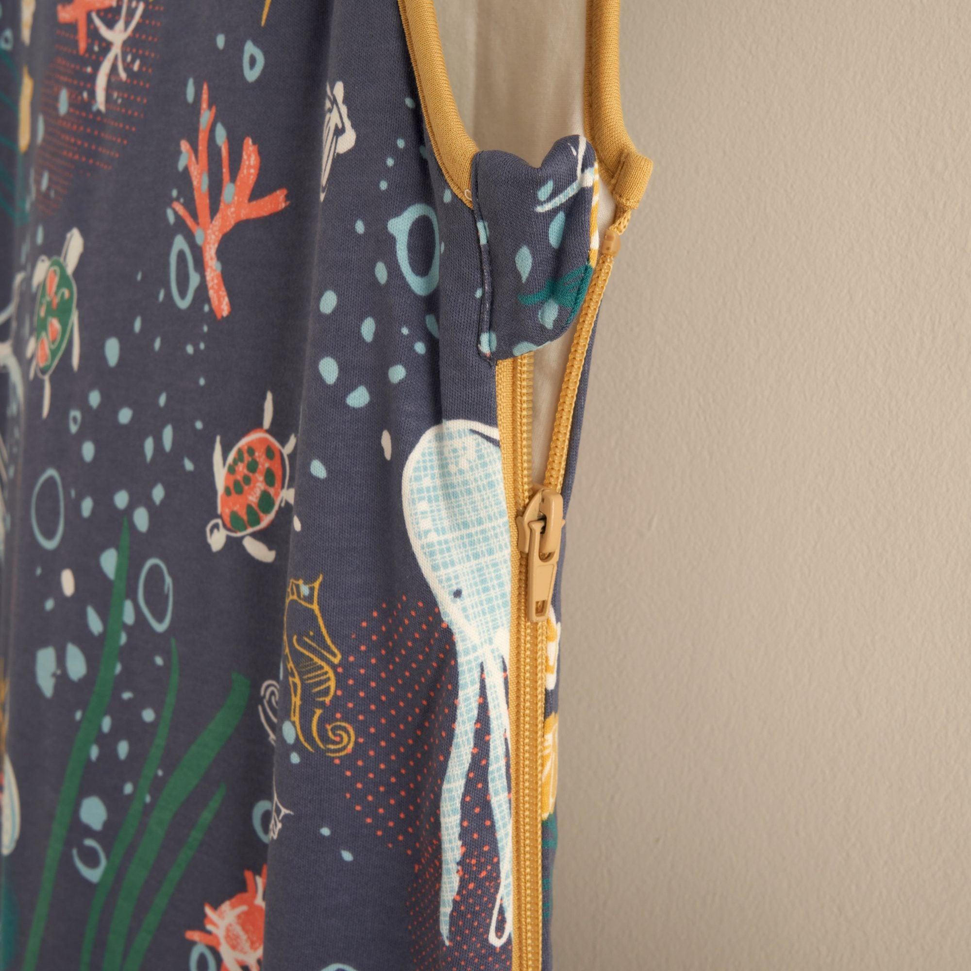 The manufacturer crafts the sleeping bags from soft sustainable bamboo cotton and covers the zip heads with fabric to prevent contact with the baby's delicate skin. Additionally, each sleeping bag includes a free thermometer.