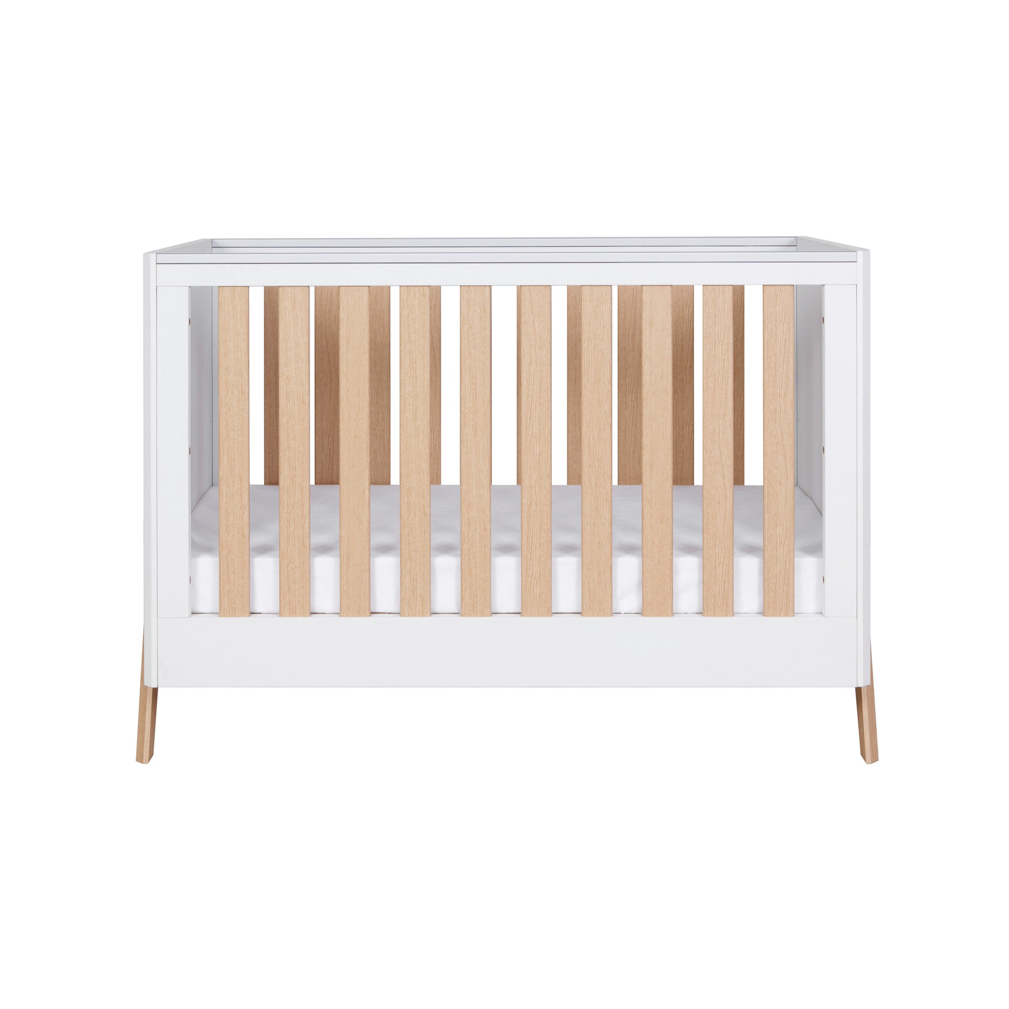 Introducing our Fuori 2 Piece Room Set in White & Light Oak – a harmonious fusion of Scandinavian-inspired design and practicality. With exposed legs and a sleek appearance, it's the perfect choice for those seeking a clean, contemporary nursery aesthetic. This set includes a cot bed that seamlessly converts to a toddler bed or sofa, along with a chest changer providing ample storage for all your baby's essentials.
