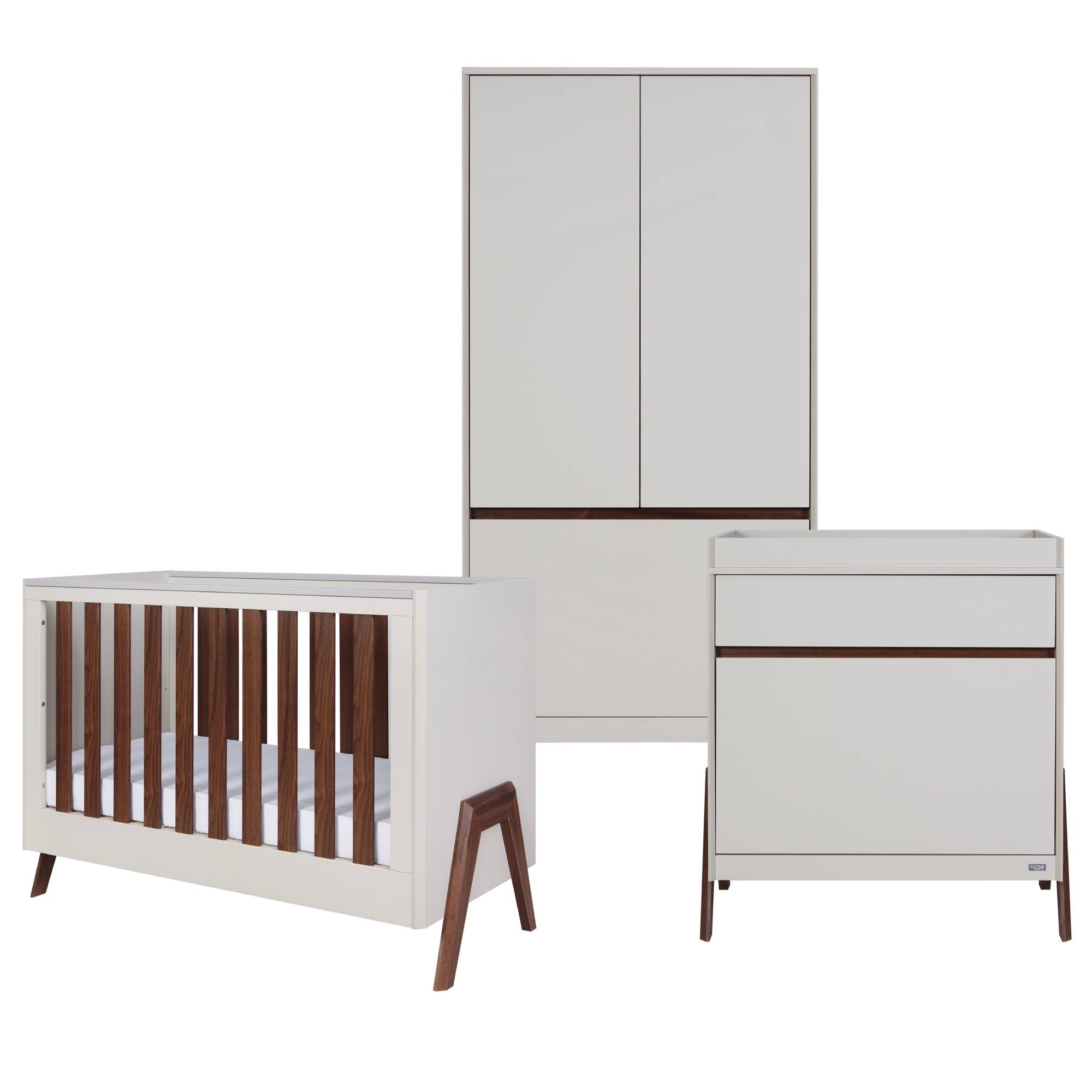 - What's Included: Fuori Mini Cot Bed, Fuori Chest Changer, and Fuori Wardrobe