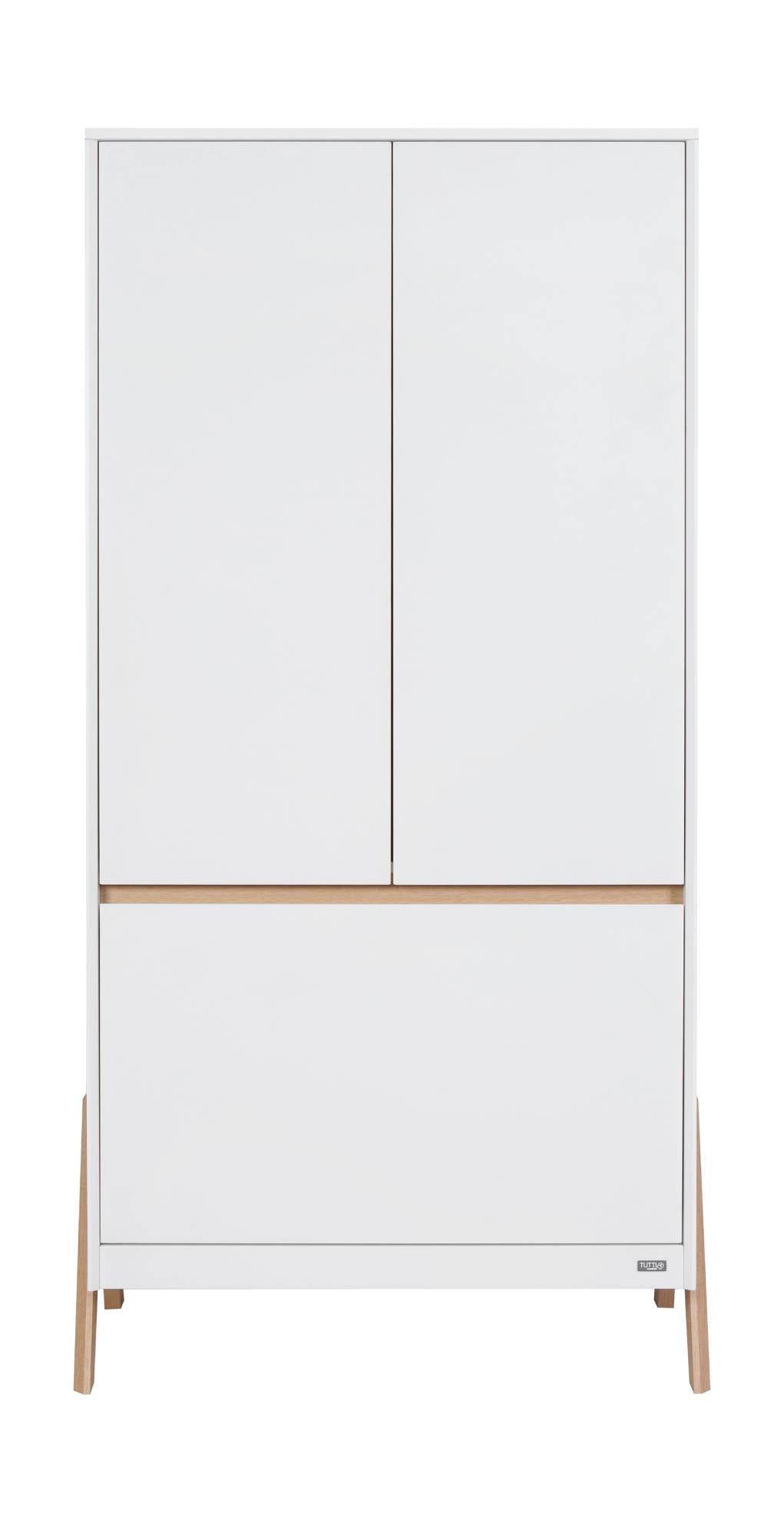 Introducing our Fuori Mini 3 Piece Room Set in White & Light Oak – a harmonious fusion of Scandinavian-inspired design and practicality. With exposed legs and a sleek appearance, it's the perfect choice for those seeking a clean, contemporary nursery ambiance. This set comprises a space-saving cot bed that effortlessly converts to a toddler bed or sofa, a chest changer, and a wardrobe, offering ample storage for all your baby's essentials.