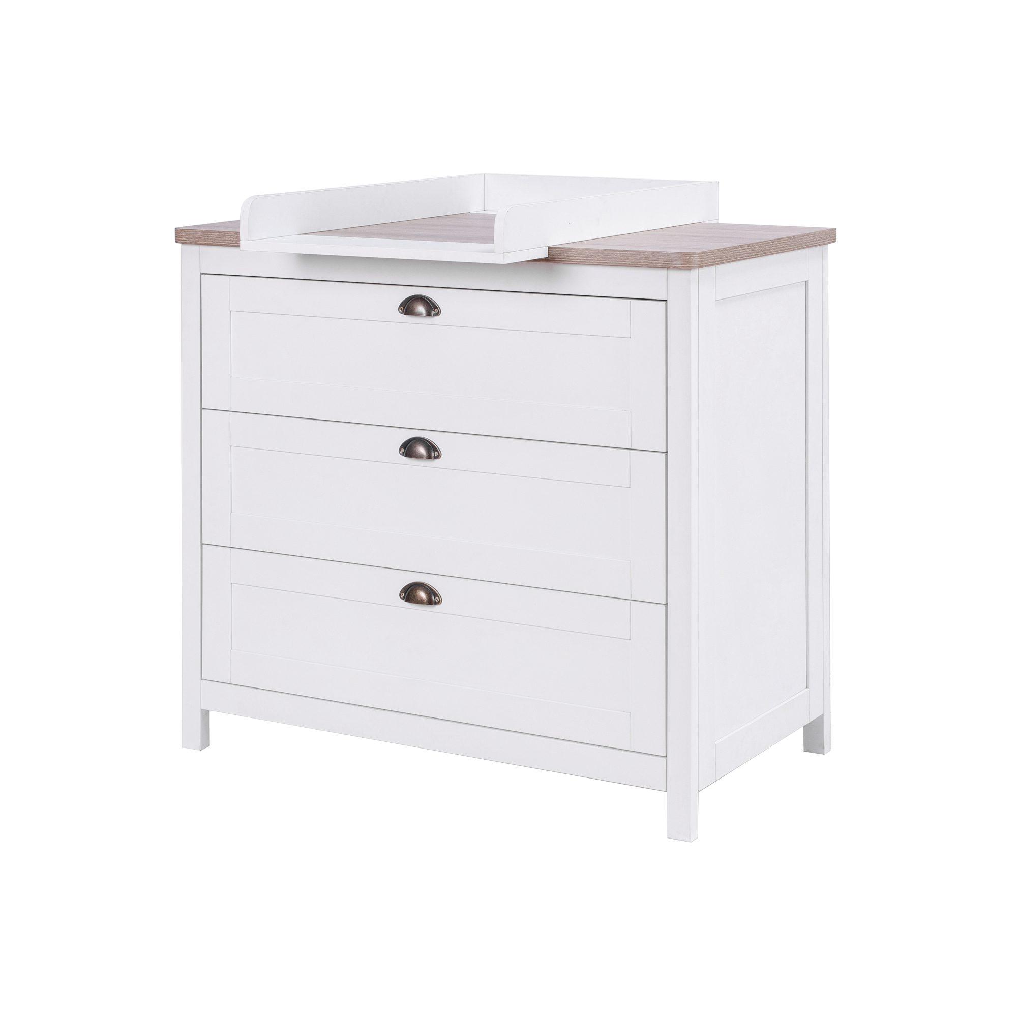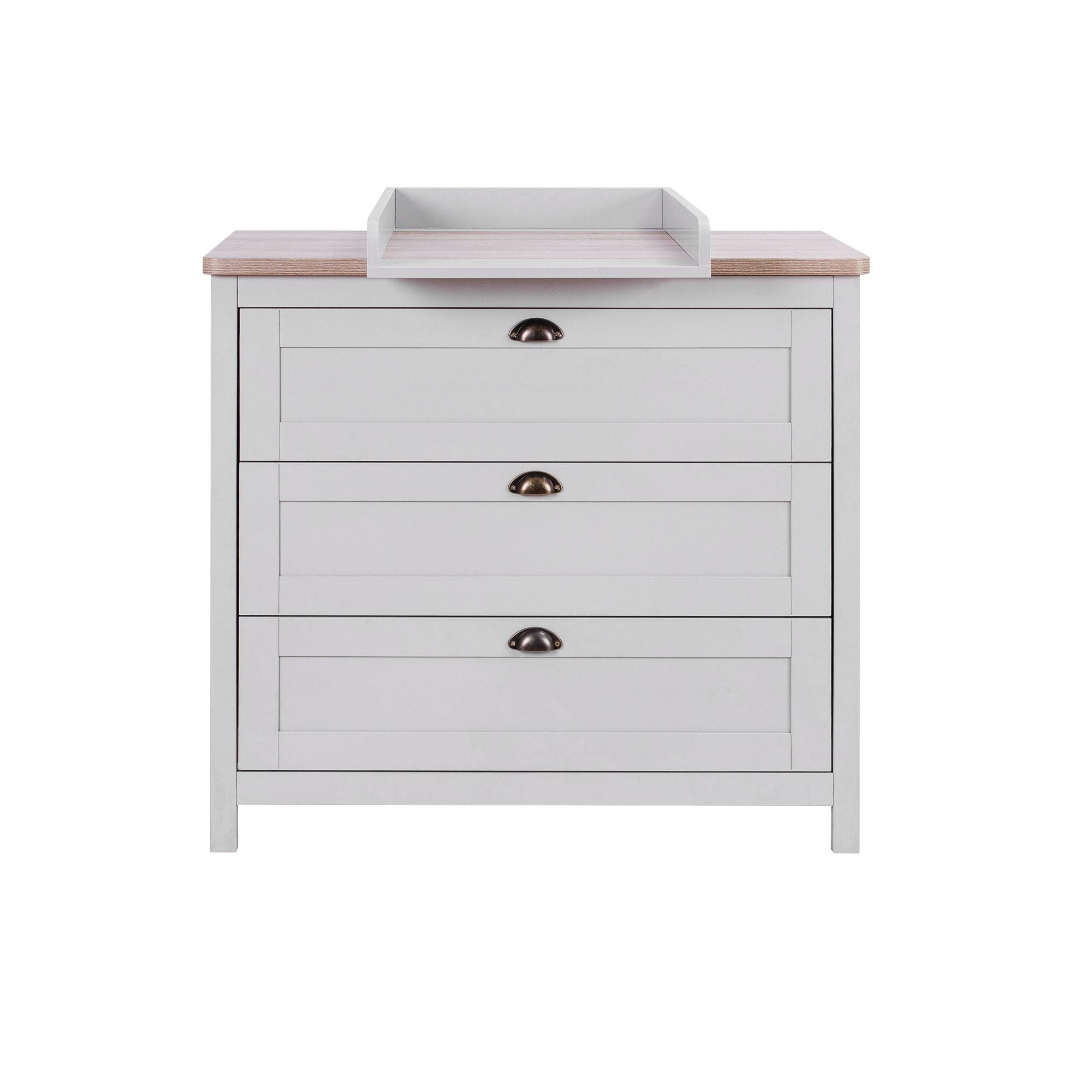 High quality table top with elegant oak wood surface adds a nice contrast to the Verona's stylish clean lined design. The chest also comes with practical detachable standard sized baby changer suitable to use from birth up to approximately 15kg.