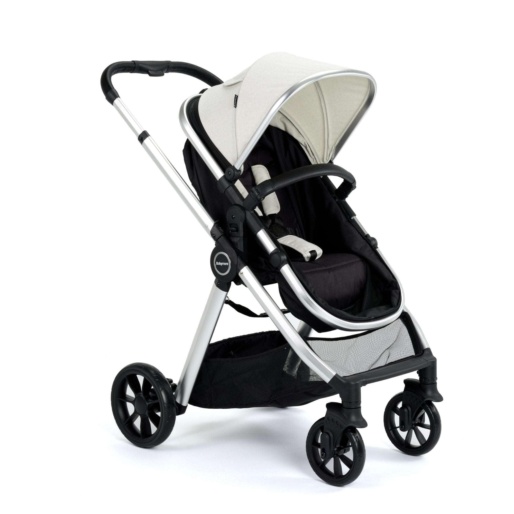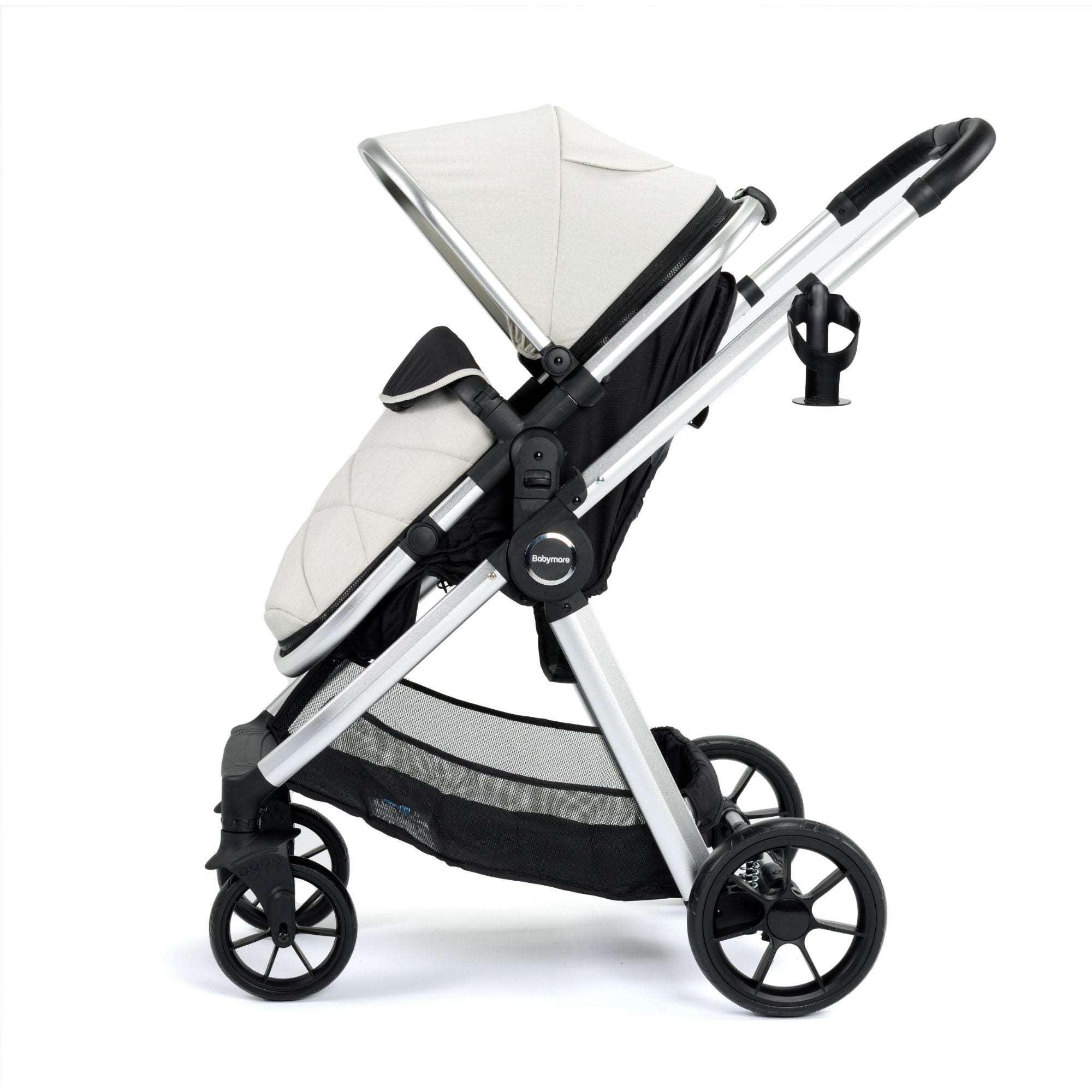 The Babymore Mimi Travel System with Pecan i-Size Car Seat combines style, convenience, and unmatched safety. The system transforms from a comfortable pram for newborns into a sleek pushchair for toddlers up to 22kg.