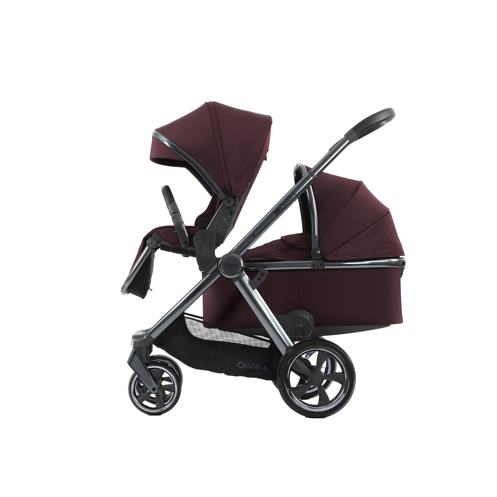 The Oyster4 stroller has 8 approved tandem configurations for twins or close-in-age siblings when using the Oyster4 Tandem Adaptors (includes wheel guards). Multi Car Seat Adaptors are required when using the Oyster Capsule Infant Car Seat.