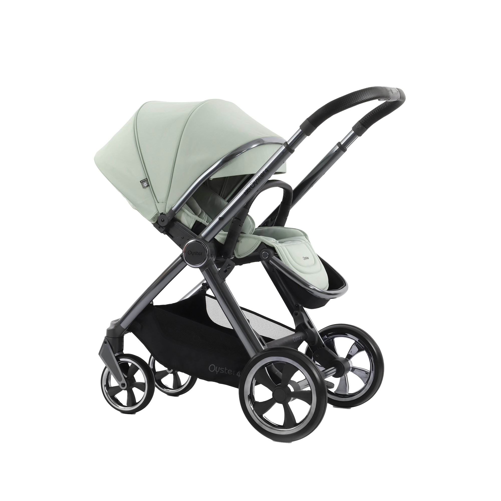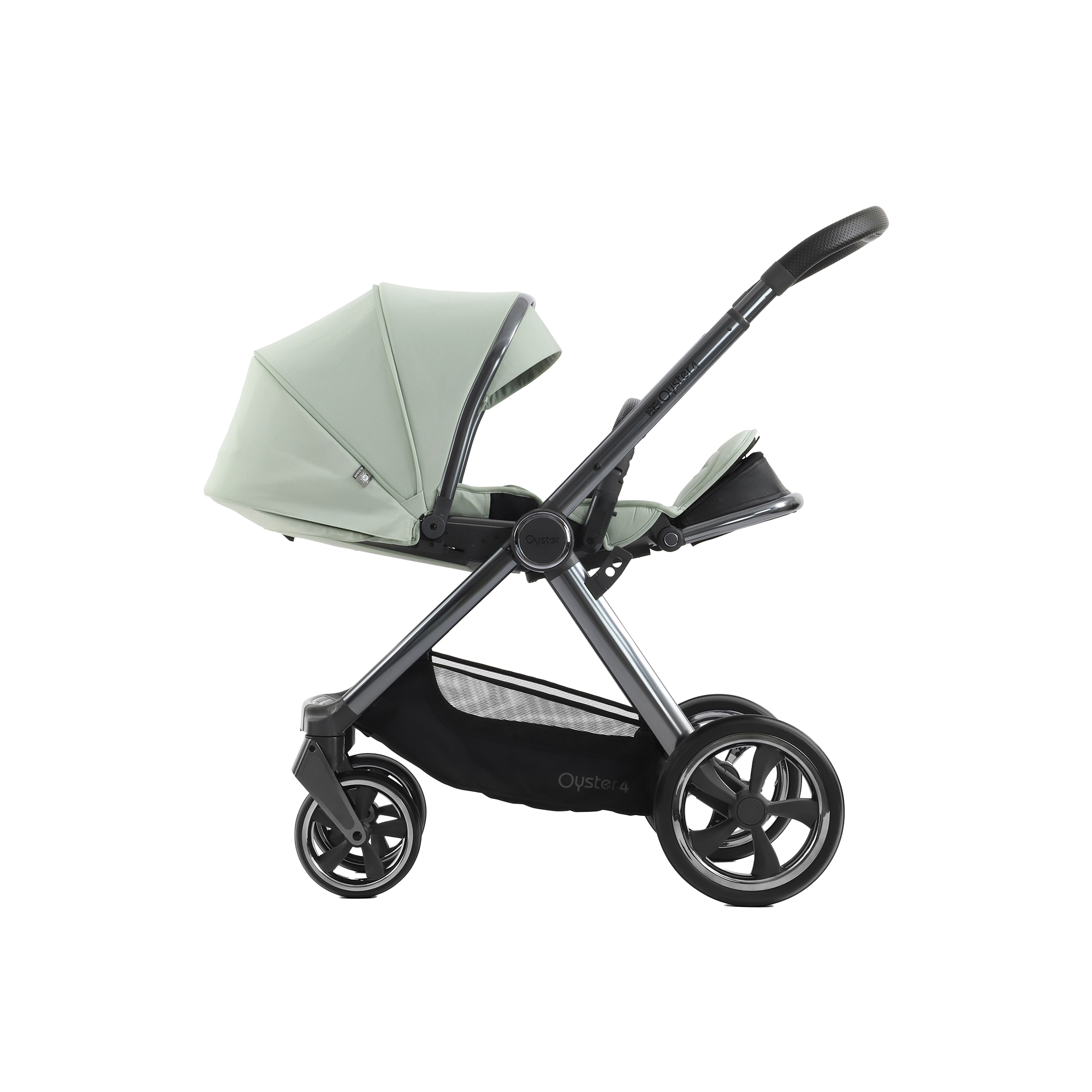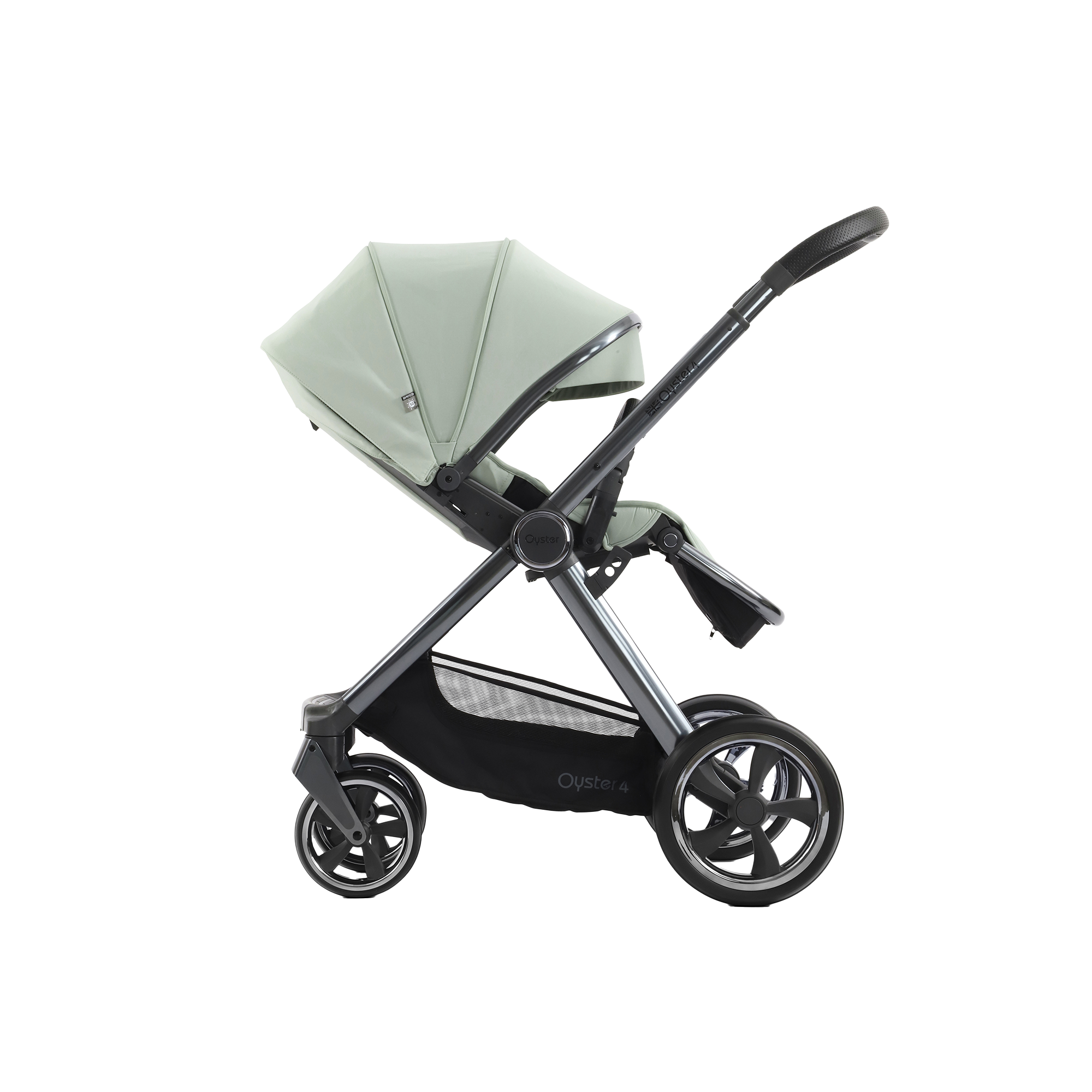 A one-hand reclining seat with lie-flat newborn option, adjustable calf rest, gated bumper bar, magnetic buckle, height adjustable headrest and harness, flip-flop friendly brake and 5kg shopping basket redefine ease. The Oyster4 also has an easy-to-adjust handle with a height range of 101-113cm.