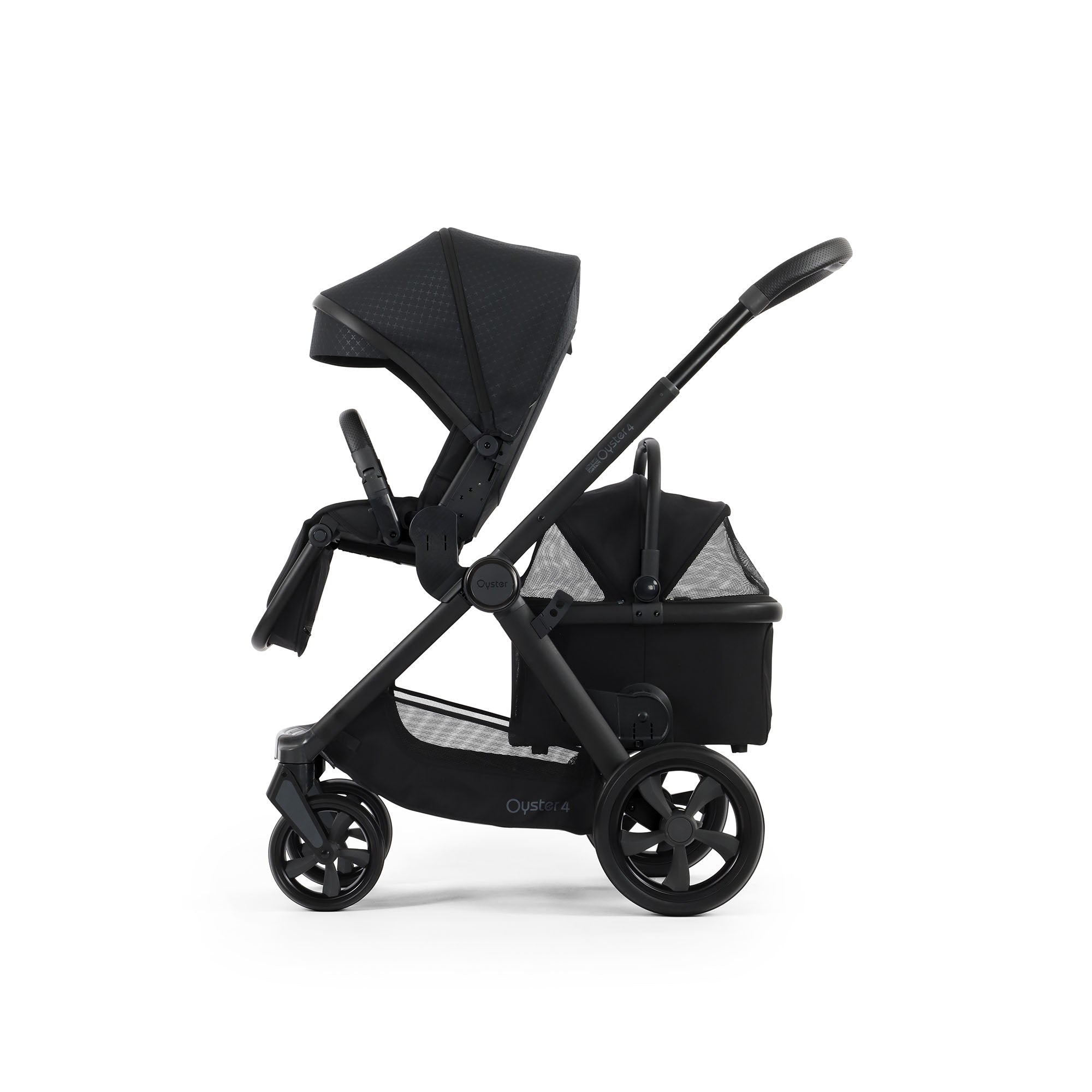 Using the Oyster4 Tandem Adaptors, the Oyster Basket allows the stroller to be a true family companion, suitable for pets (or shopping) up to 9kg in 3 approved configurations. Multi Car Seat Adaptors are required when using the Oyster Capsule Infant Car Seat.