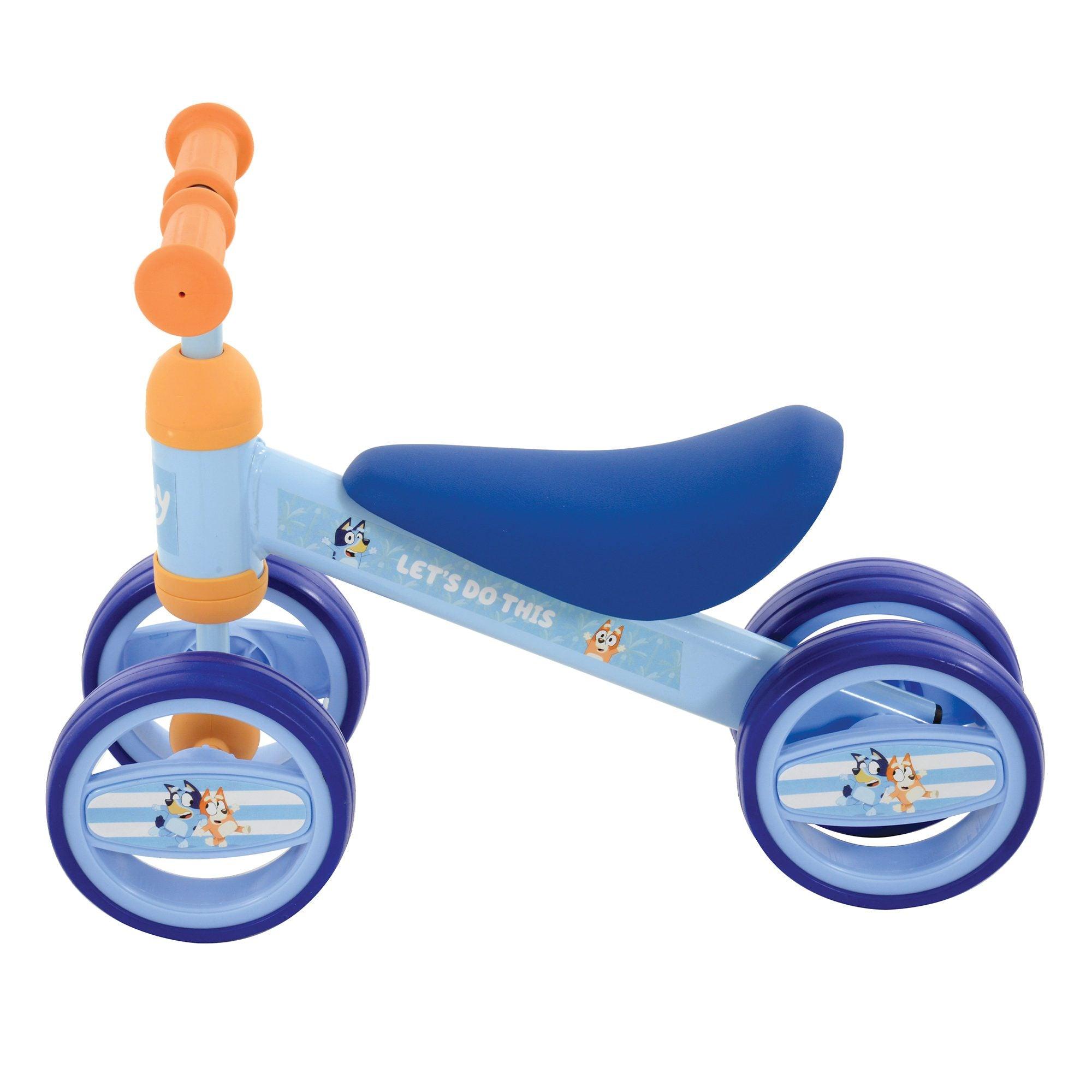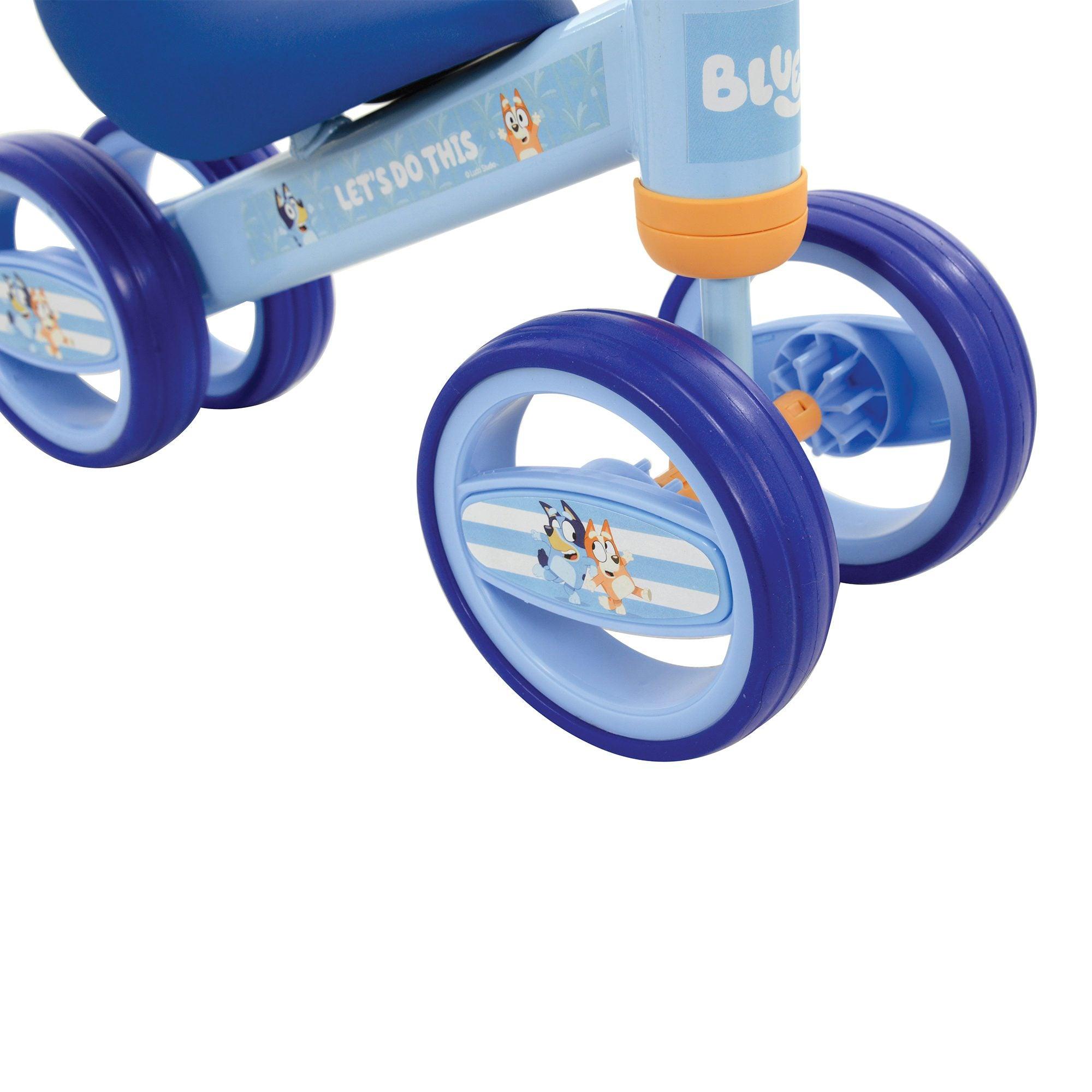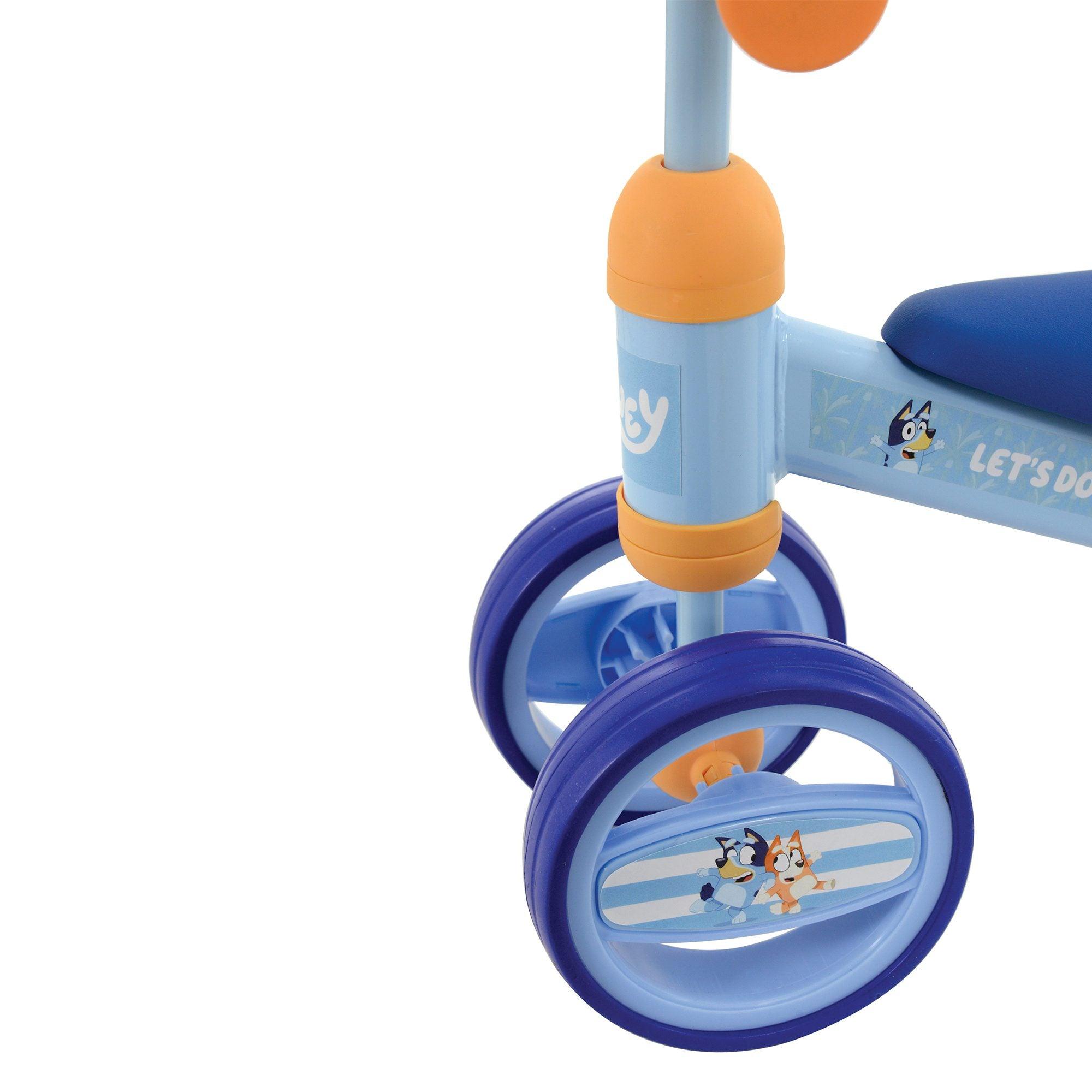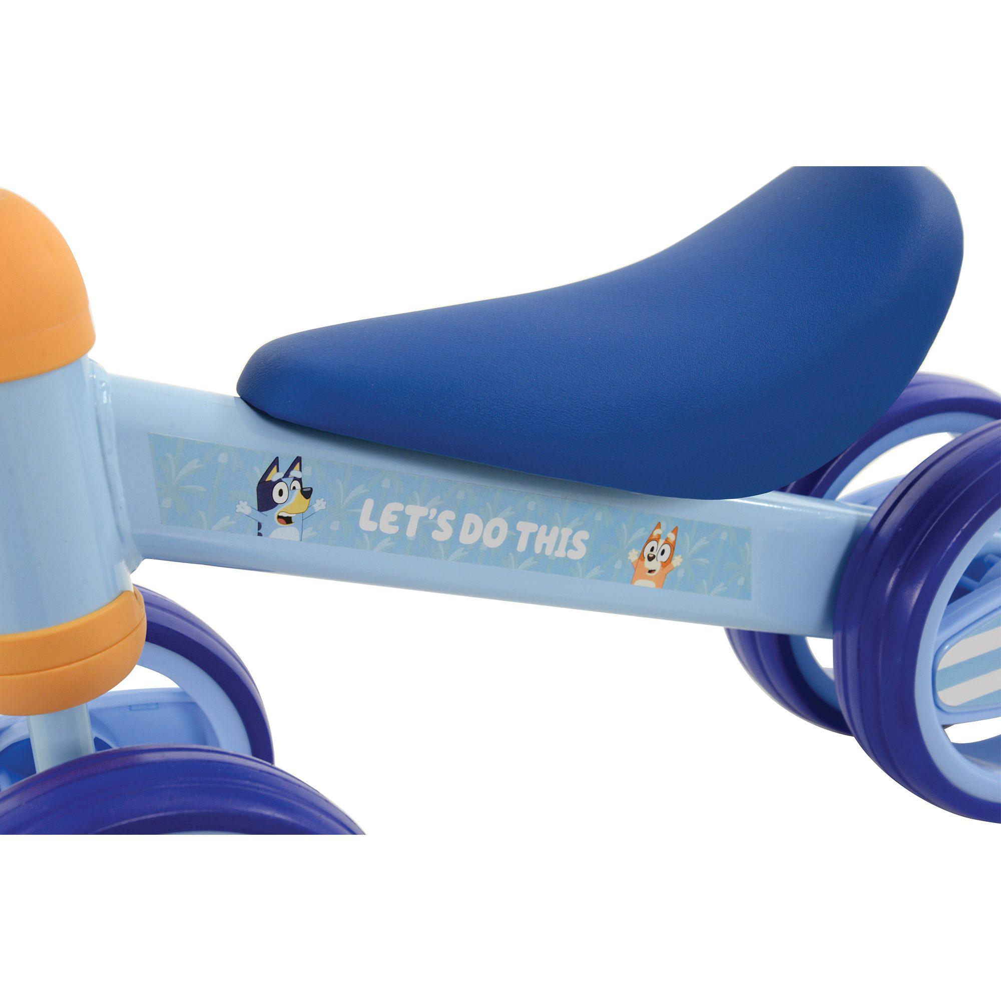 The Bluey Bobble Ride On is the perfect first bike for little ones finding their feet. The double front and back wheel design provides additional anti-tip stability.