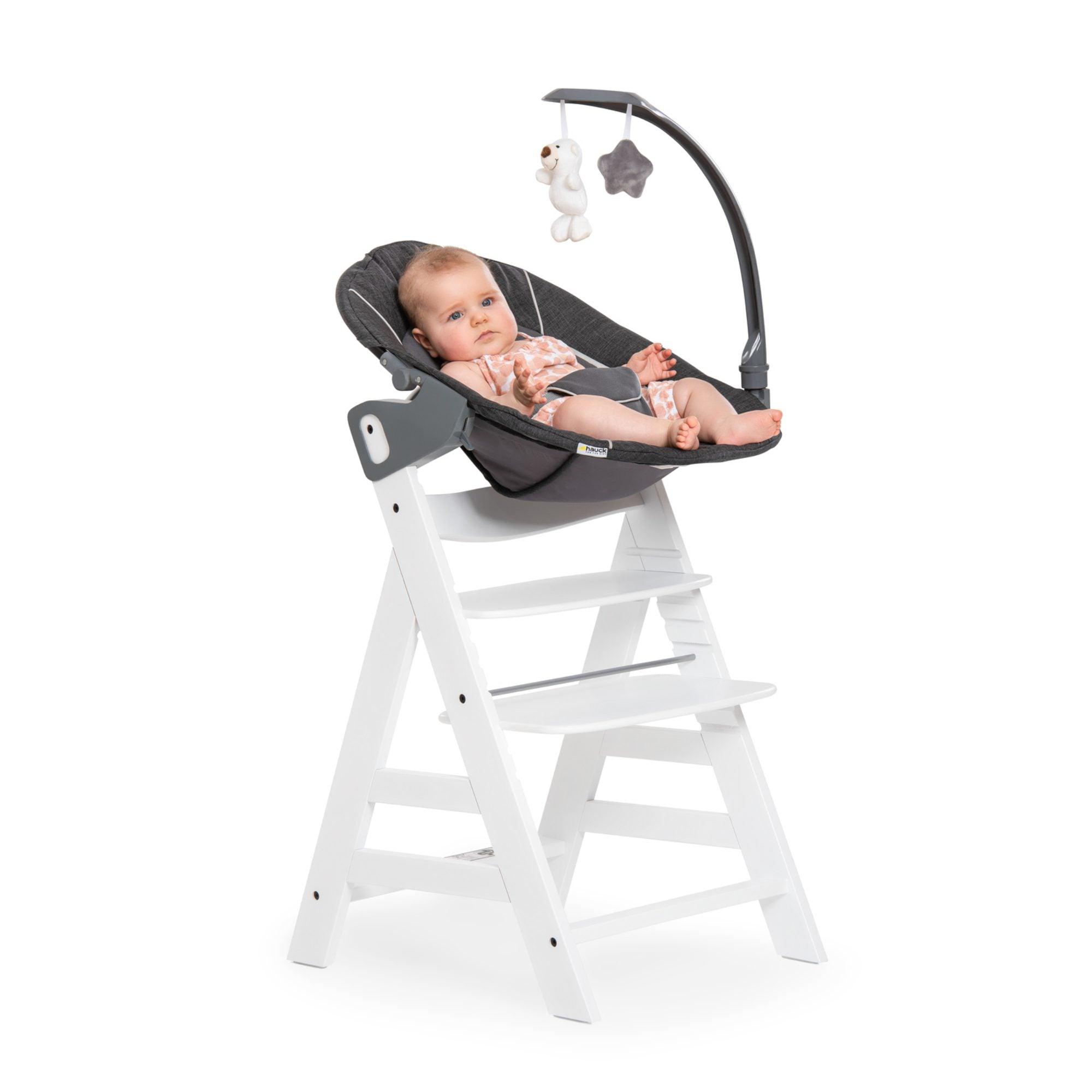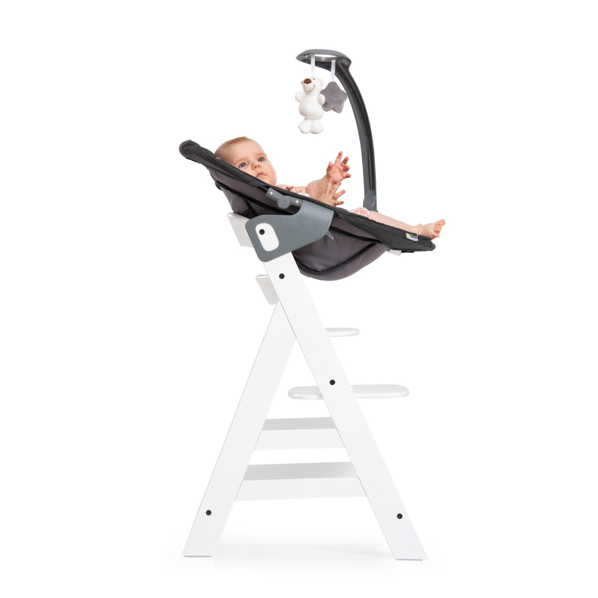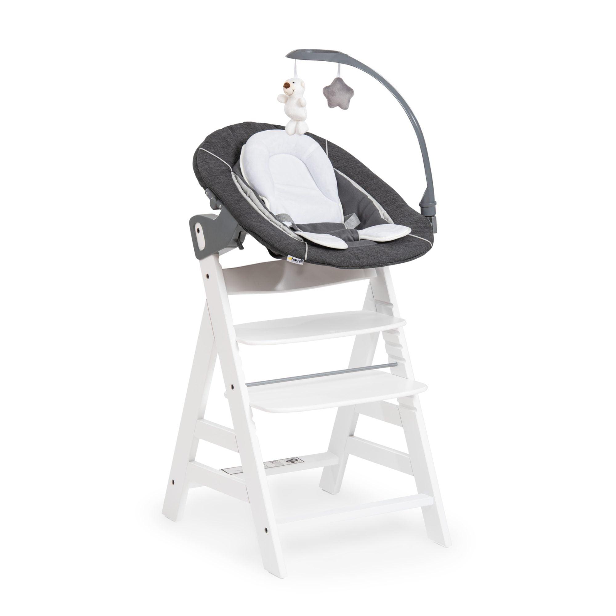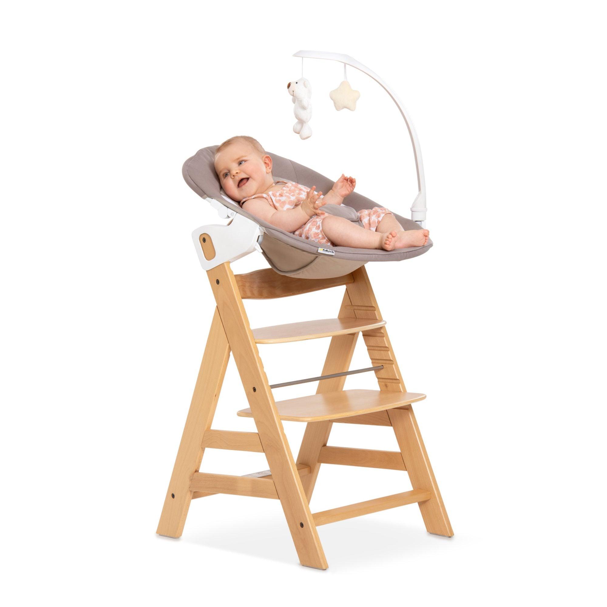 The Alpha Bouncer Deluxe is a cosy baby bouncer that is compatible with the hauck wooden highchairs Alpha+ and Beta+.