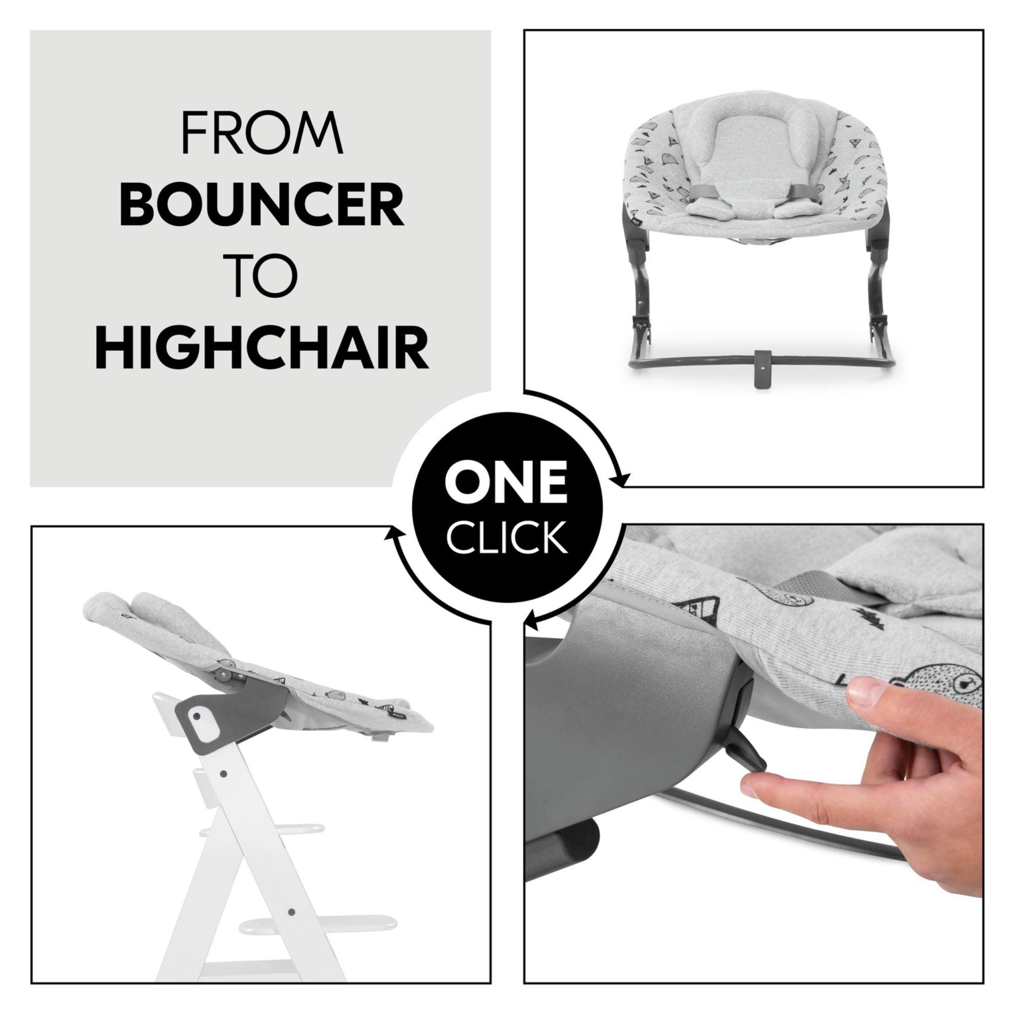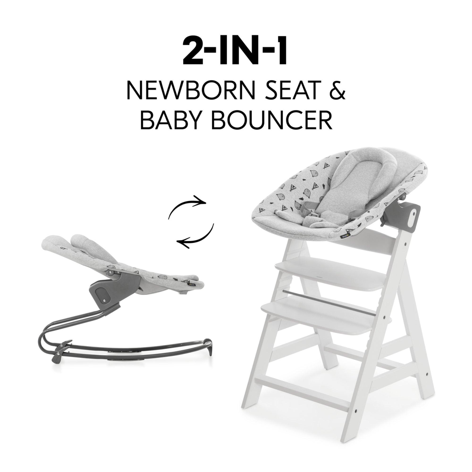 - Versatile use as a newborn seat on the highchair or as a bouncer