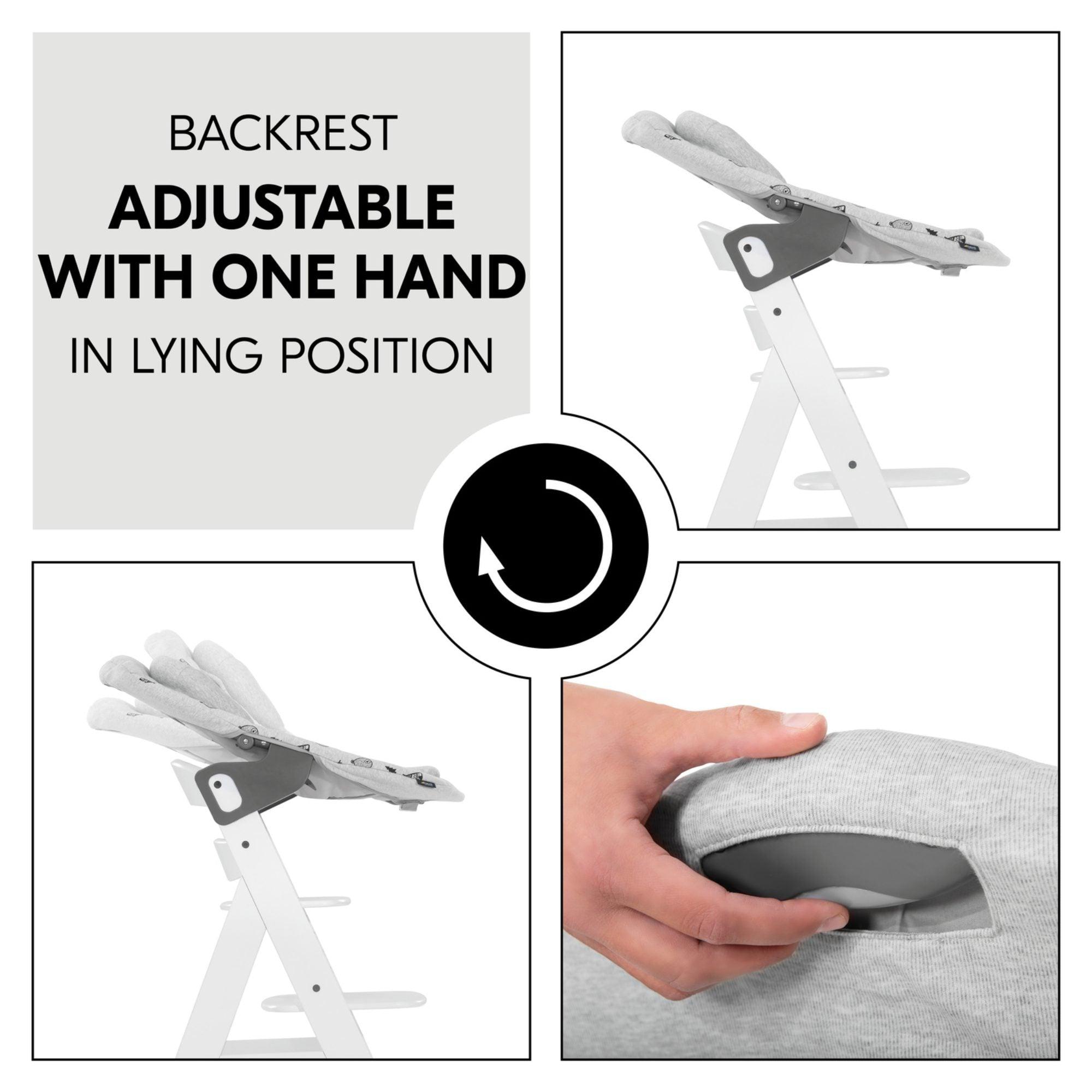 - Easy adjustability of the backrest for feeding or relaxation