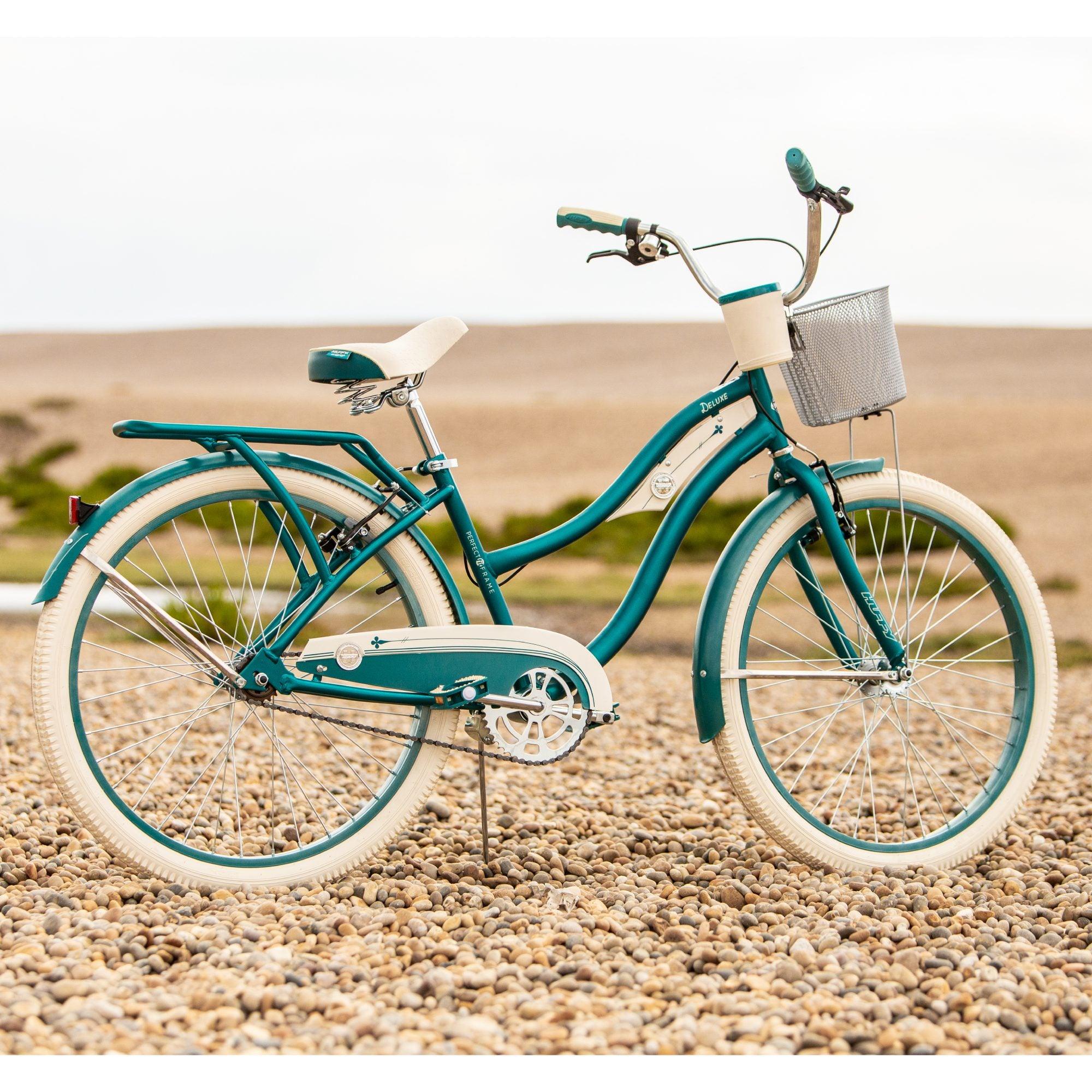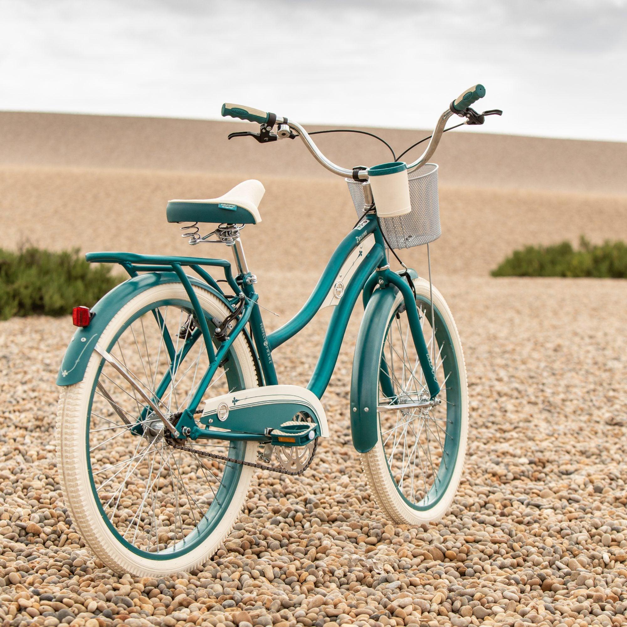 This Huffy Deluxe Women 26" Hybrid Cruiser Bike is ready to cruise the streets in style. With the combination of comfort and style, you will enjoy every ride you take on this classic emerald green hybrid cruiser bike.