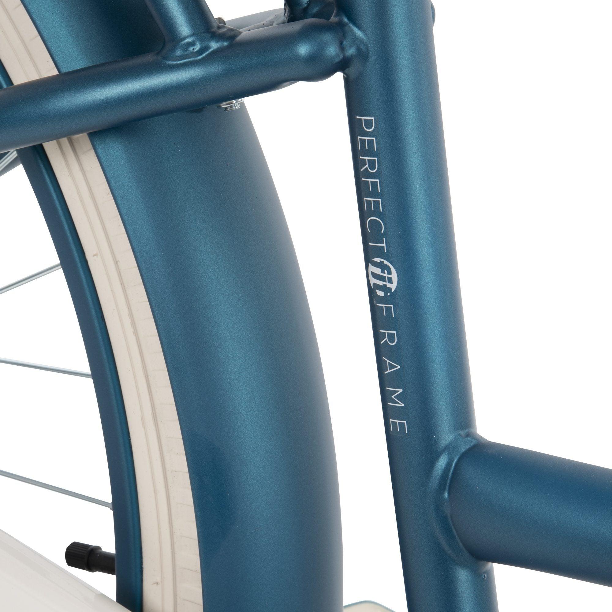 Designed with your comfort in mind, the exclusive Perfect Fit frame supports your natural riding position and improves stability, which benefits your back, arms and hands. The deluxe padded spring saddle, dual density grips and pedals, wider tyres and fenders keep dirt and water away for maximum comfort no matter how long you ride. Front and rear alloy V-brakes keeps you in total control.