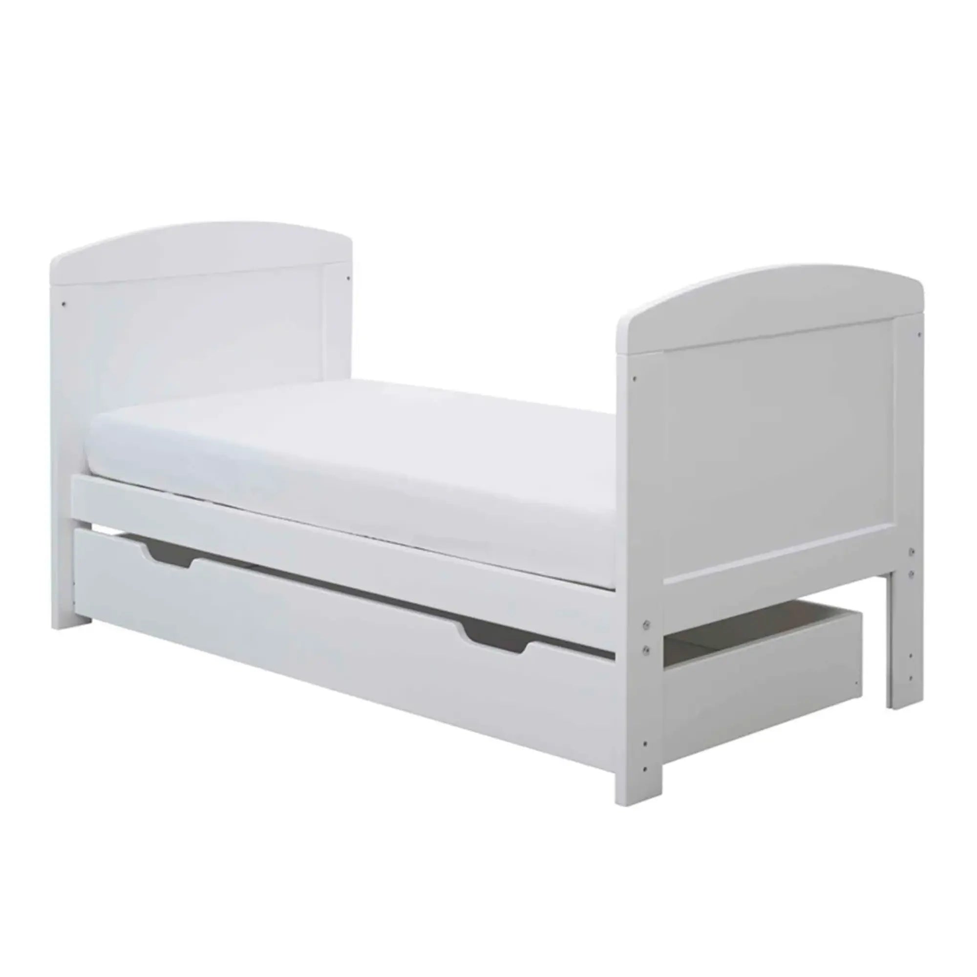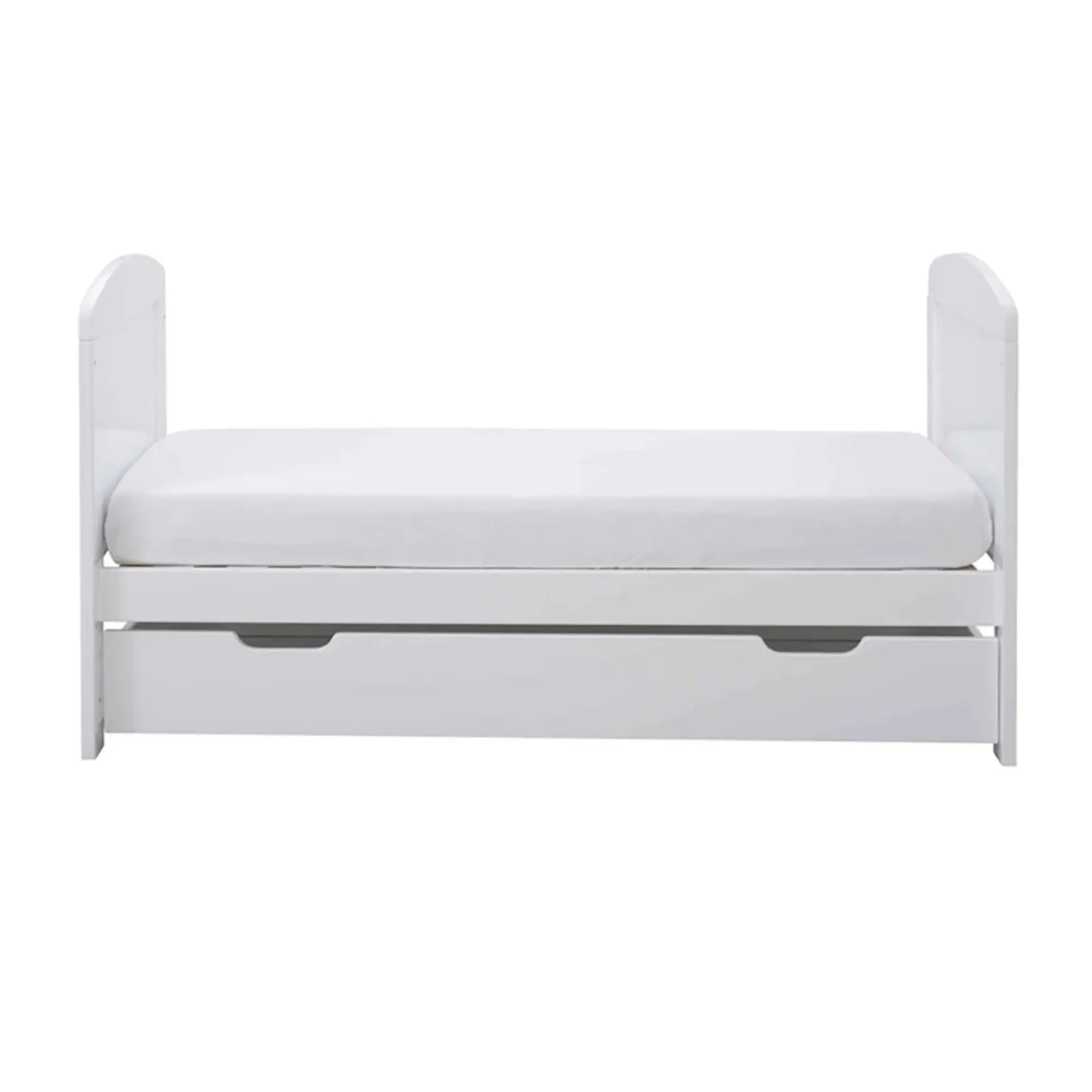 In the early days, when your little one is still immobile, alleviate strain on your back by starting with the mattress at its highest level. However, as they grow and become more mobile, you can lower the mattress to deter climbing with two additional lower positions. For those maximizing space in a compact nursery, explore our range featuring a convenient underdrawer and cot top changer.
