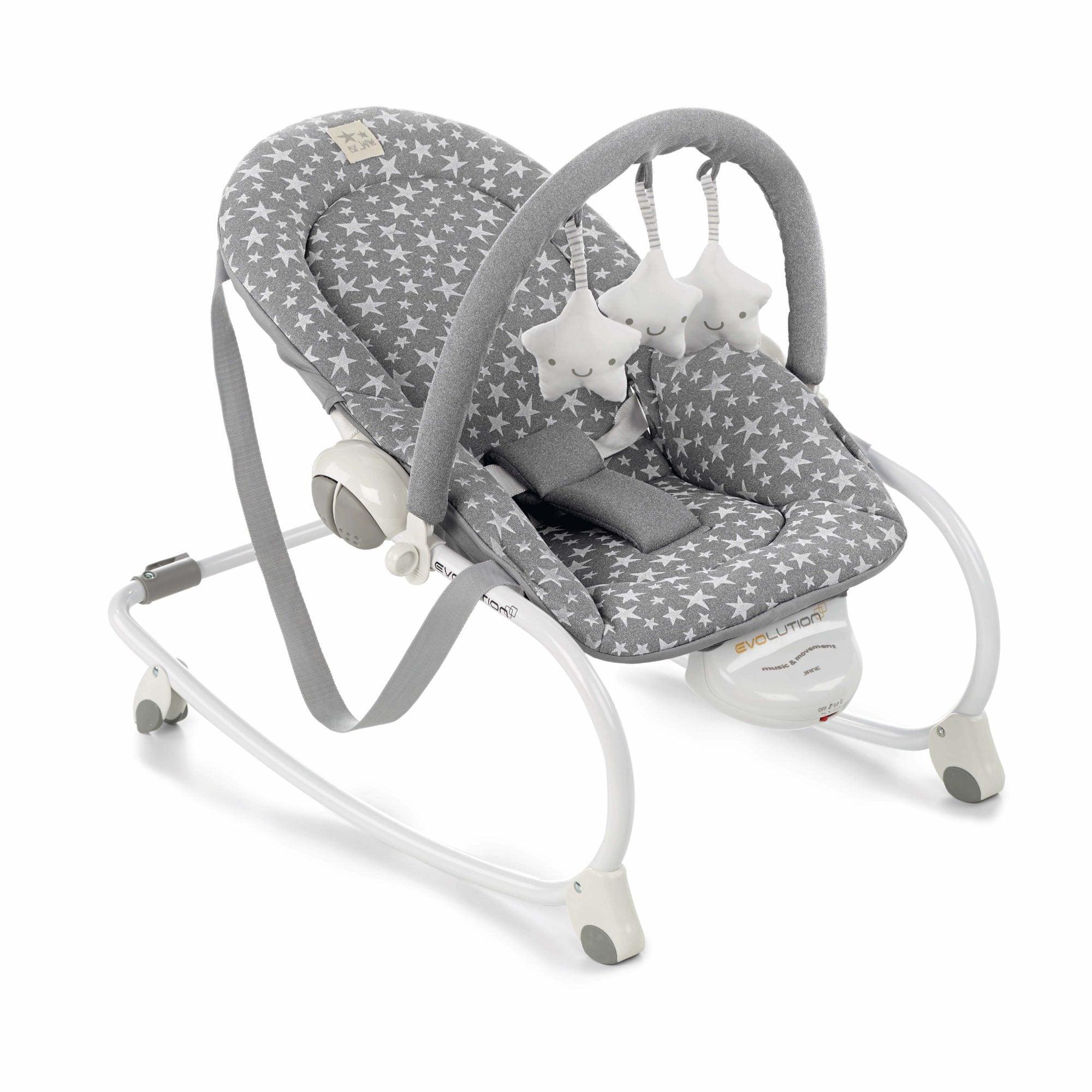 Jané Evolution Rocker and Seat coverts into a baby chair making it suitable for children from 0 all the way up to 36 months. Songs and vibrations to help your baby relax. Three in one features: It's a rocker, baby and toddler seat, and also a baby napper.