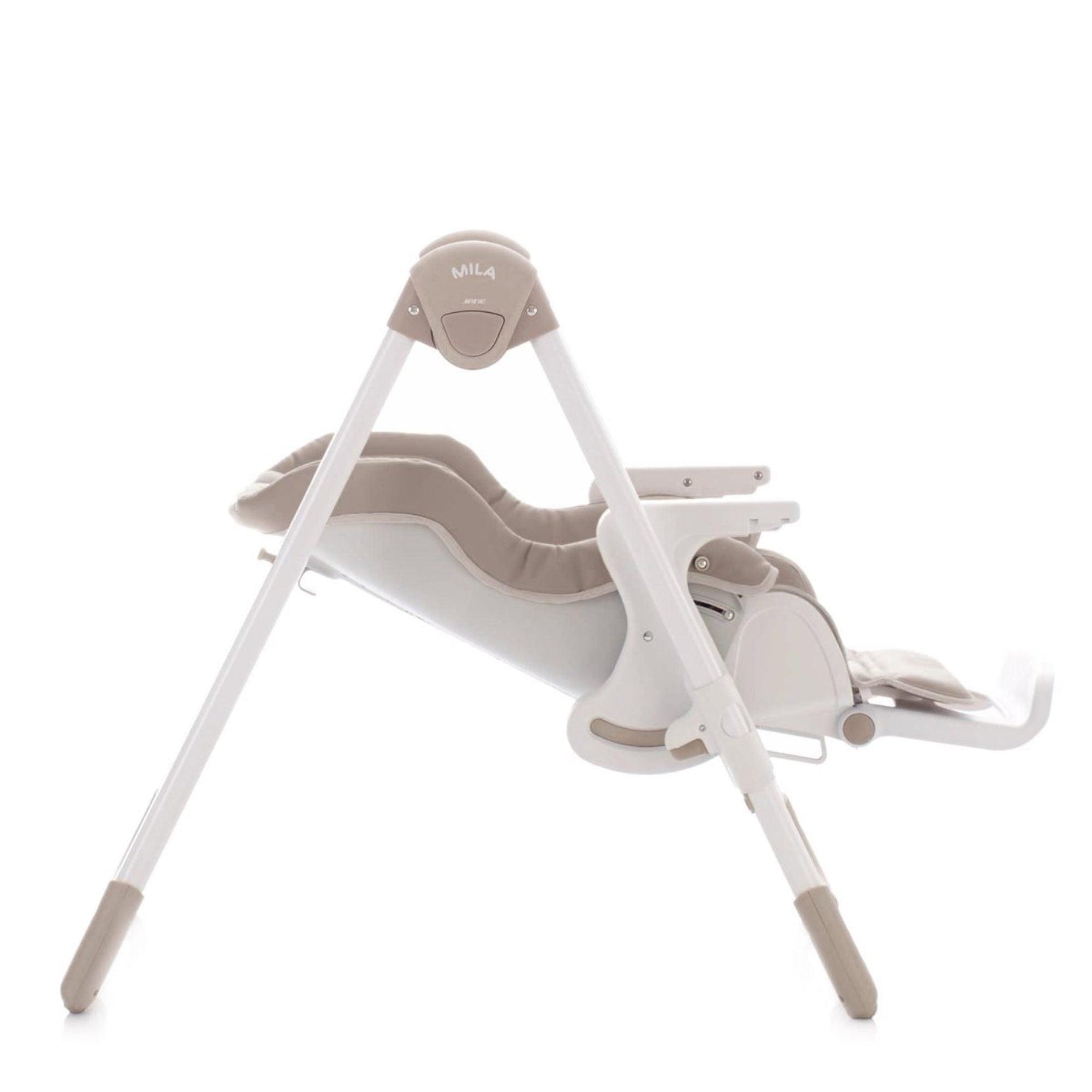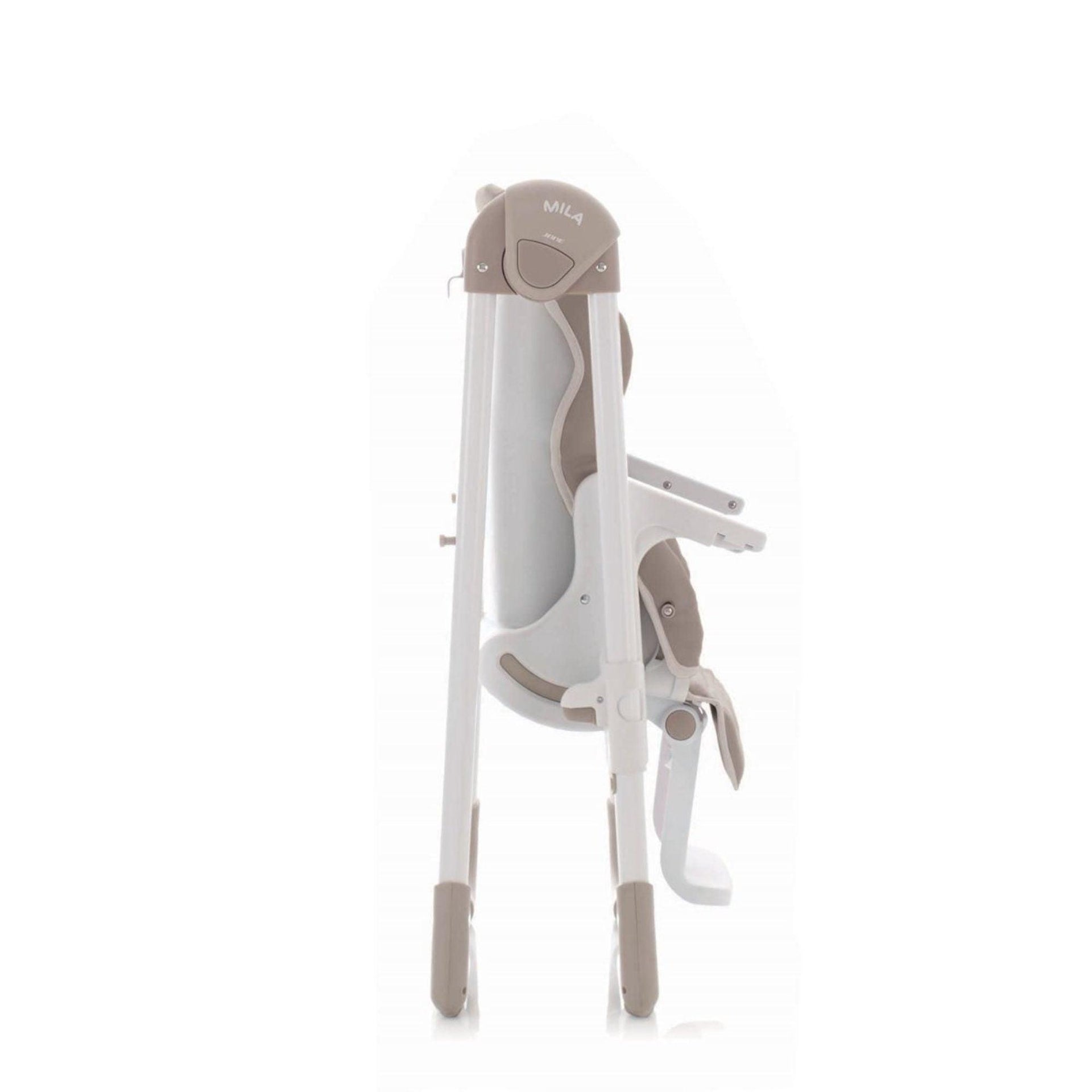 The backrest of the Mila can be reclined, and the footrest can be adjusted to enhance your child’s comfort. In fact, this luxury folding highchair has 6 recline positions, 7 height positions and 2 tray positions; that is 84 different combinations!