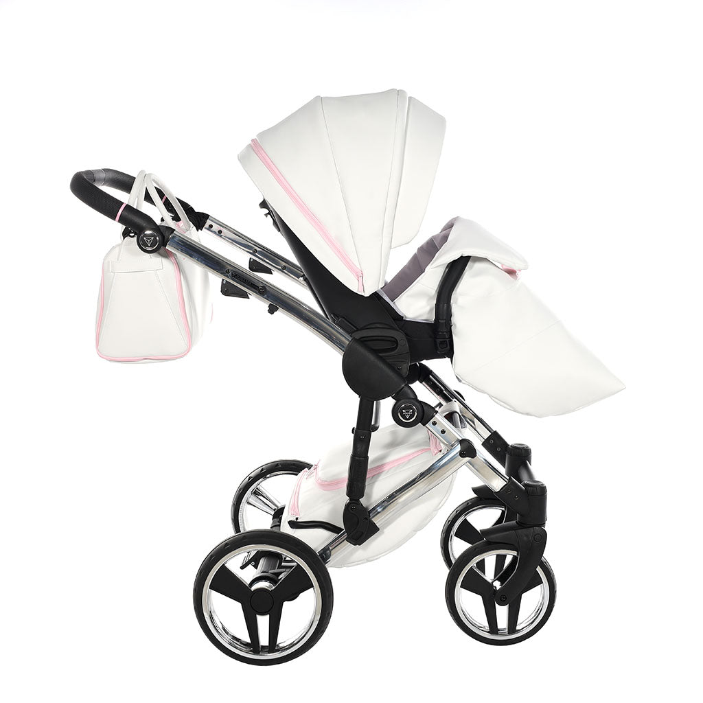 Bring a pop of pastel charm to every stroll with the Junama Candy Collection, a perfect blend of soft colour and high-performance design. Available in Candy Pink or Baby Blue, this 2in1 pram system features a chrome frame, premium eco-leather detailing, and the unmistakable Junama quality that turns heads and makes parenting easier.