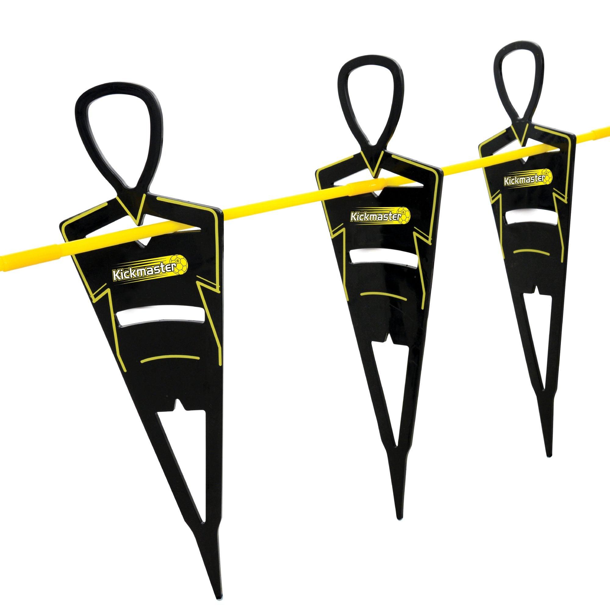 The Kickmaster Ultimate Football Challenge Set includes everything needed to create a wide range of training games and drills to develop all your fundamental football skills. The set includes a 4ft by 3ft sturdy steel goal, 3 x free kick figures, 6 x passing target hoops, which cleverly transform into chipping target zones, 4 x flexi training cones and a size 4 Kickmaster training ball.