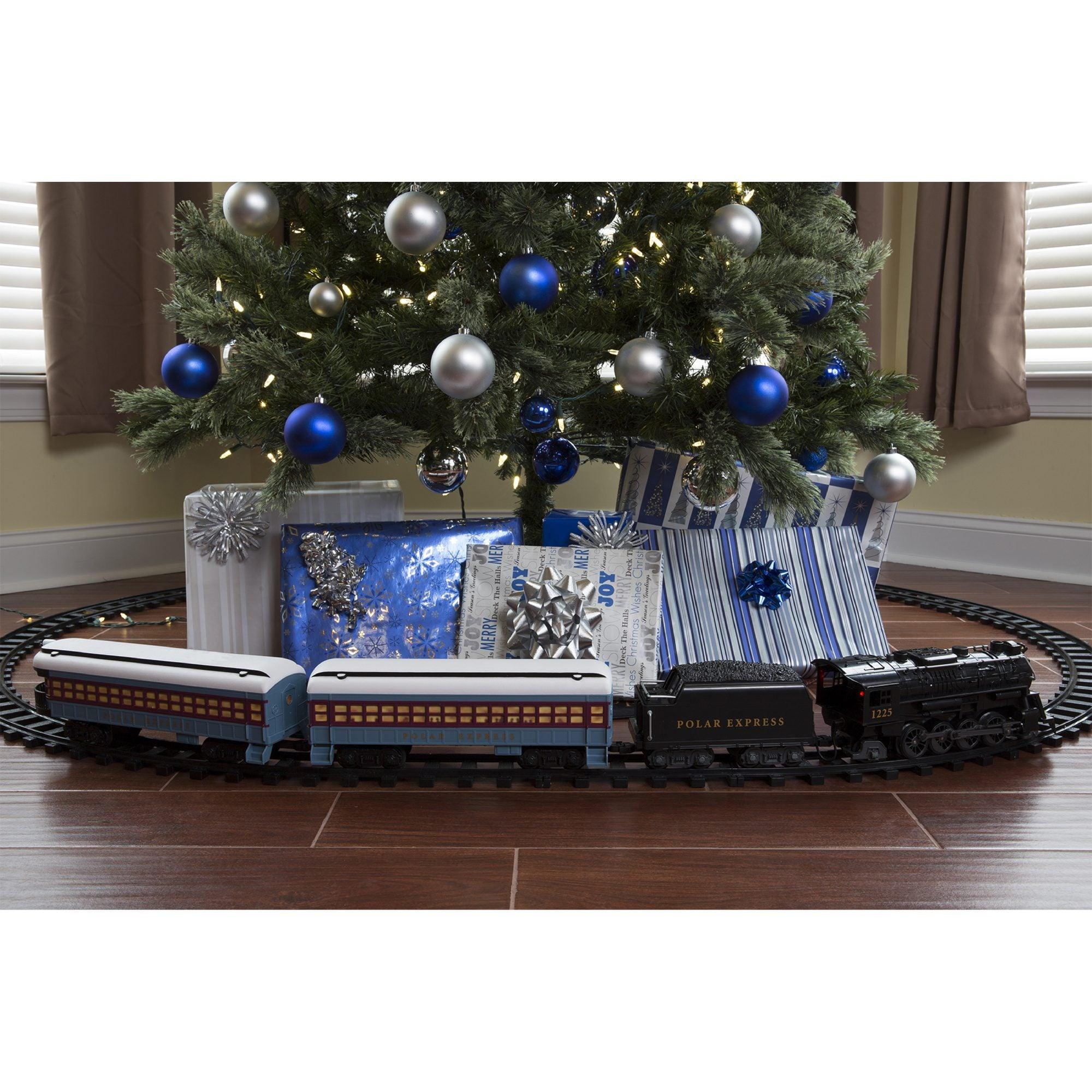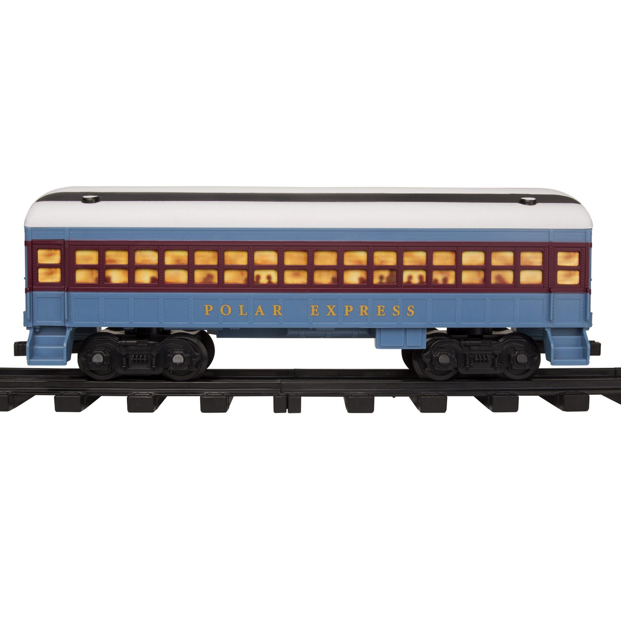 Showcase the magic of Christmas with this Lionel Trains Polar Express Ready to Play Train Set. This extra-large The Polar Express licensed train set comes with a 32 piece track (24 curved plastic track pieces and 8 straight track pieces and a four piece train. The train comprises 1 x locomotive engine with a working light, 1 x engine tender, 1 x train carriage and 1 x observation carriage and also comes with a remote control (requires 3 x AAA batteries, not supplied). It also features 2 movie announcements (‘All Aboard, this is The Polar Express’ and ‘I am the King of the North Pole). The movie announcements are operated by the remote control, which also controls the forward and reverse movement of the train. A perfect decorative addition to put round the base of the tree for the festive season. The train requires 6 x C batteries (not supplied). The track has three different lay-out option (oval, square and round and once completed the track will measure 1.86 x 1.27 metre, if laid out in an oval). Height of train 12 cm. Suits ages 4 years +.