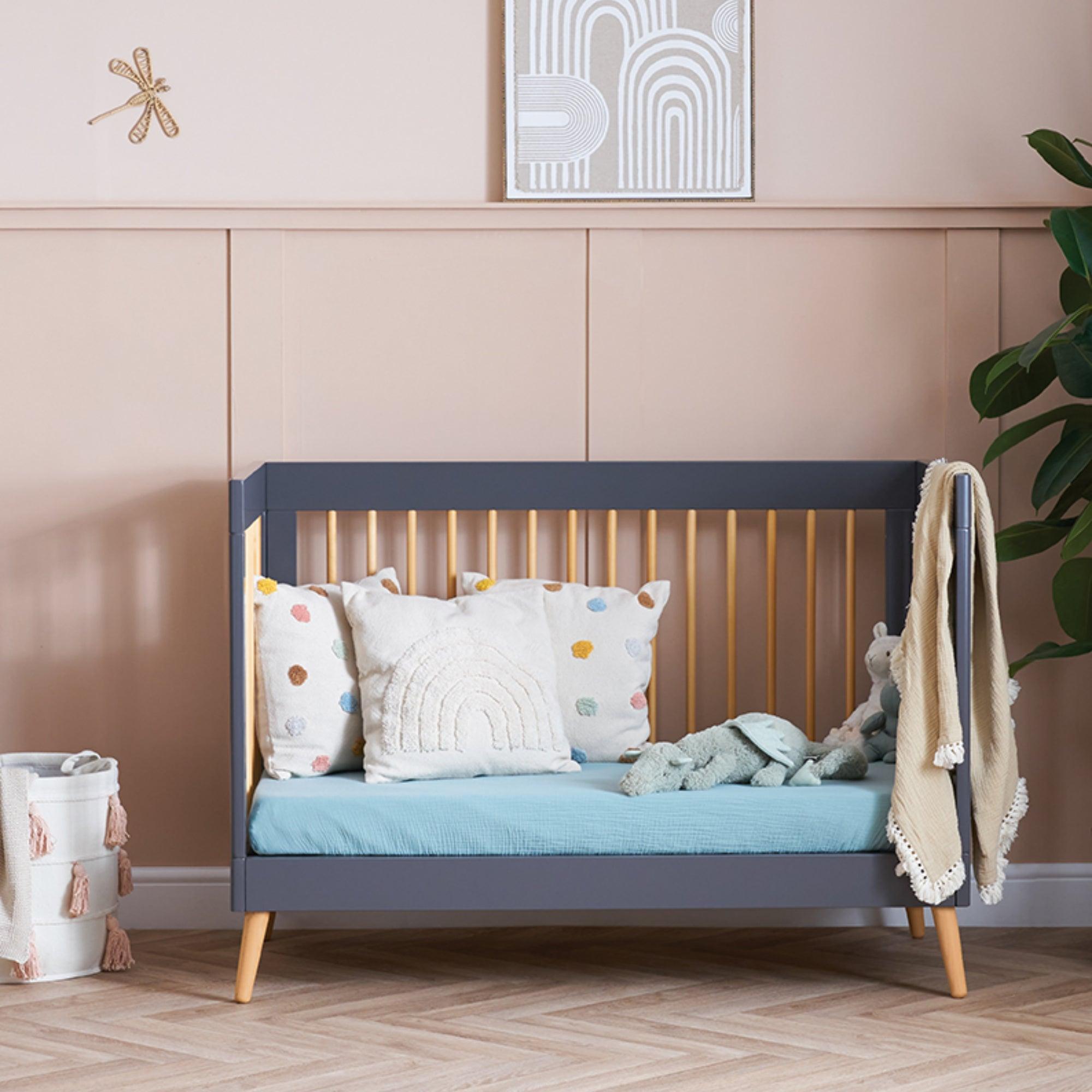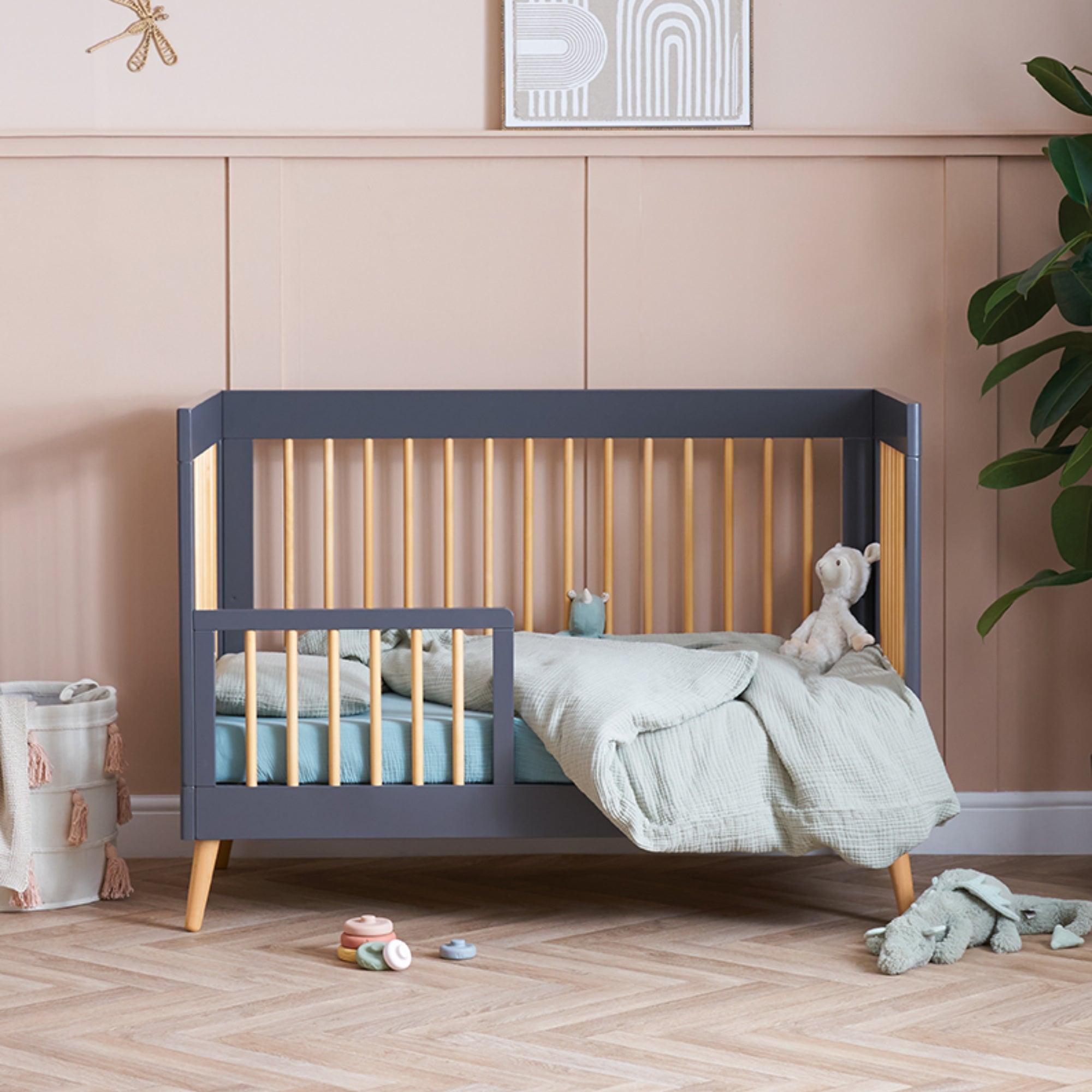 The Obaby Maya Mini cot bed is a space-saving alternative to the regular sized cot bed in the Maya range, featuring the same clean-cut design and two-tone colourway inspired by Scandinavian design. Suitable from birth to approximately four years old, it grows with your little one with its adjustable, three-position base height and included safety rail for the transition to a toddler bed. The Maya Mini cot bed requires an Obaby 120 x 60cm mattress, available separately.