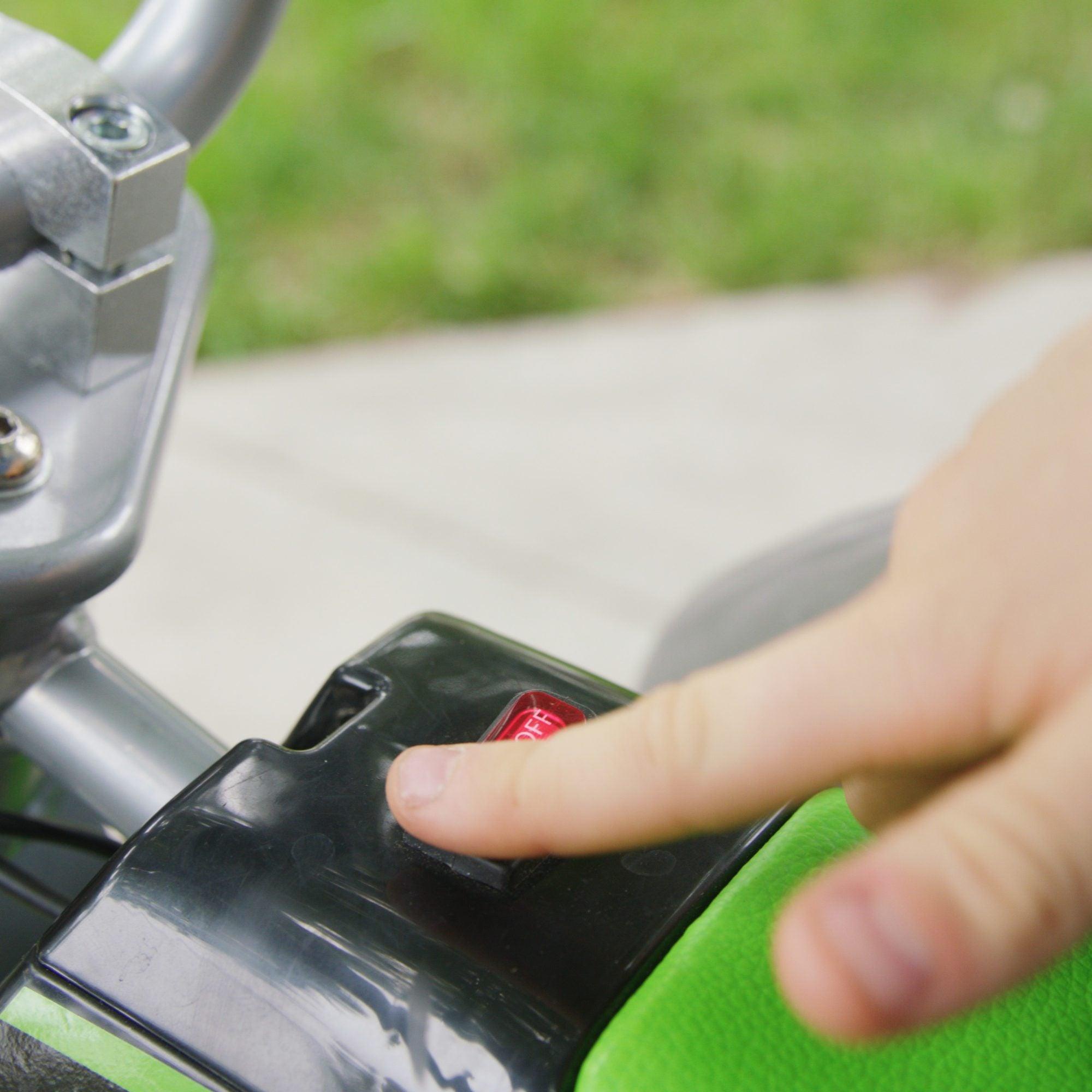 The SX350 McGrath is perfect for off-road adventures, with its durable steel frame, double crown fork with soft rubber grips, and included battery charger. Start your motocross journey today with the SX350 McGrath.