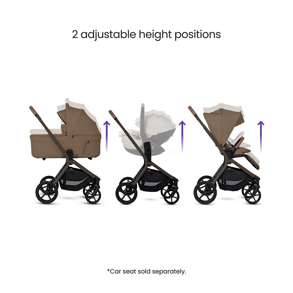 - 2-height elevation system brings baby closer in carrycot, stroller or car seat