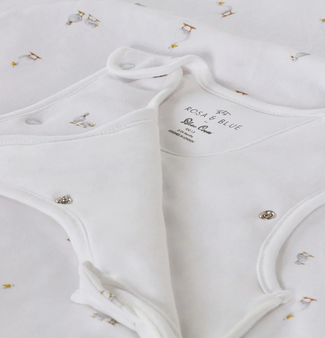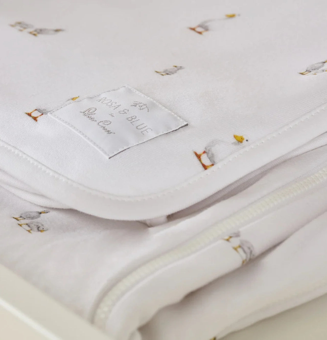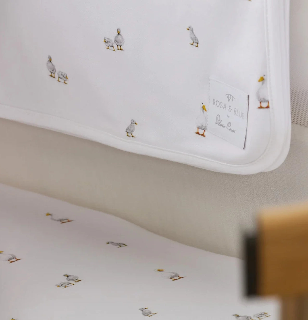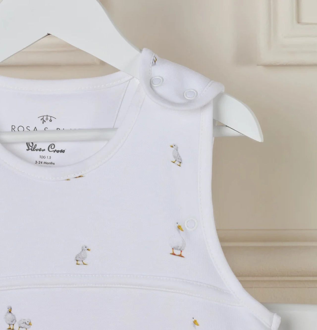 As a standout feature, the collection boasts two hand-painted designs exclusive to the Silver Cross line: the cuddly Bunny on soft ecru and the adorable Duckling on crisp white. These charming illustrations are created by Rosa & Blue and add a delightful, personal touch to your baby’s bedding.