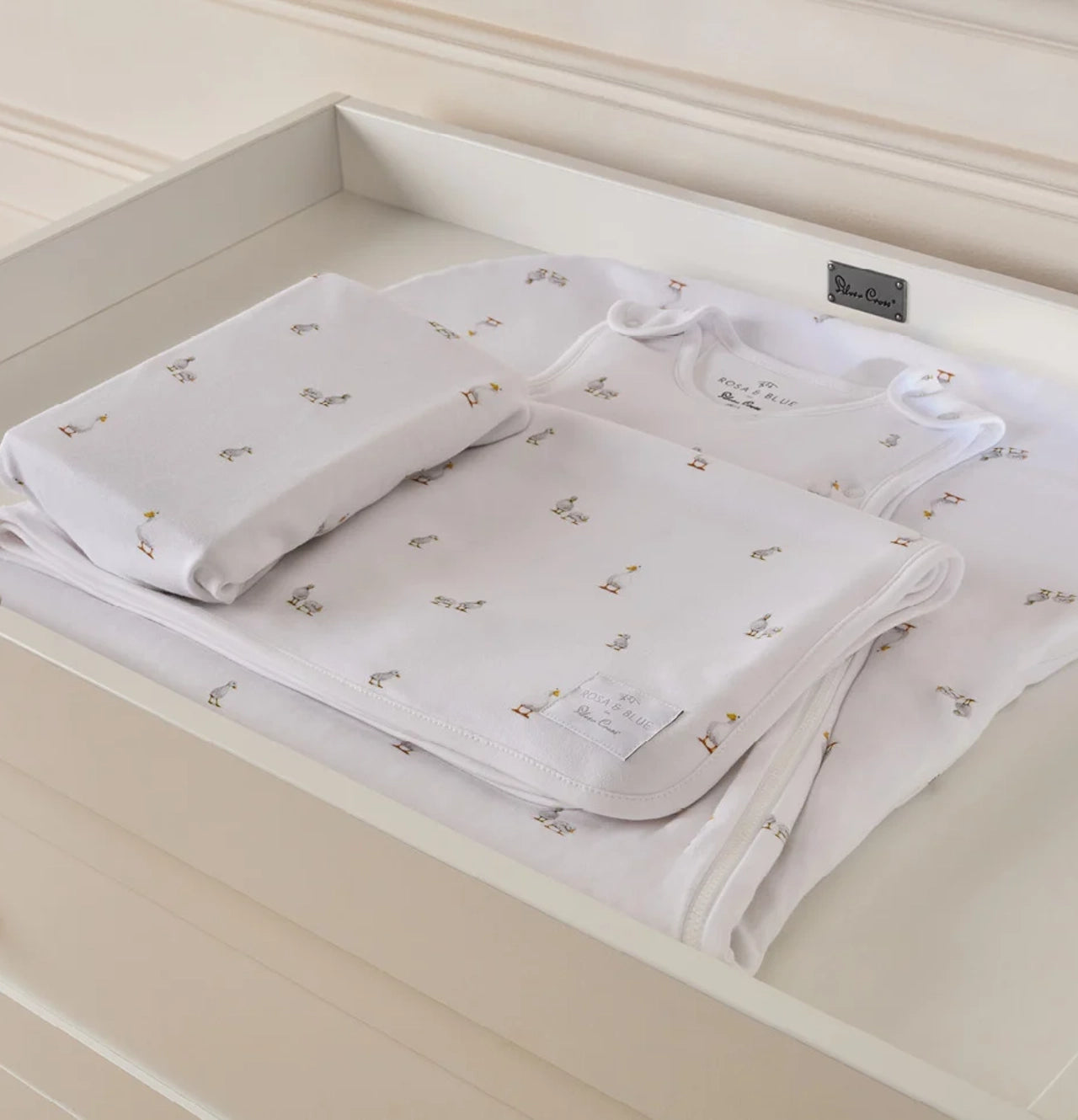 The softest sleep awaits your little one with the Silver Cross New Arrival Crib Bedding Set, designed by the sleepwear experts at Rosa & Blue. Specializing in dreamy sleep essentials, they craft each piece from natural materials and showcase unique, hand-painted illustrations.