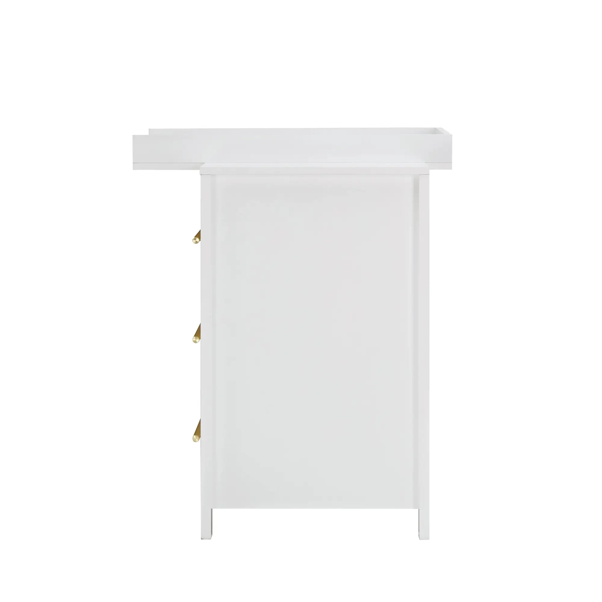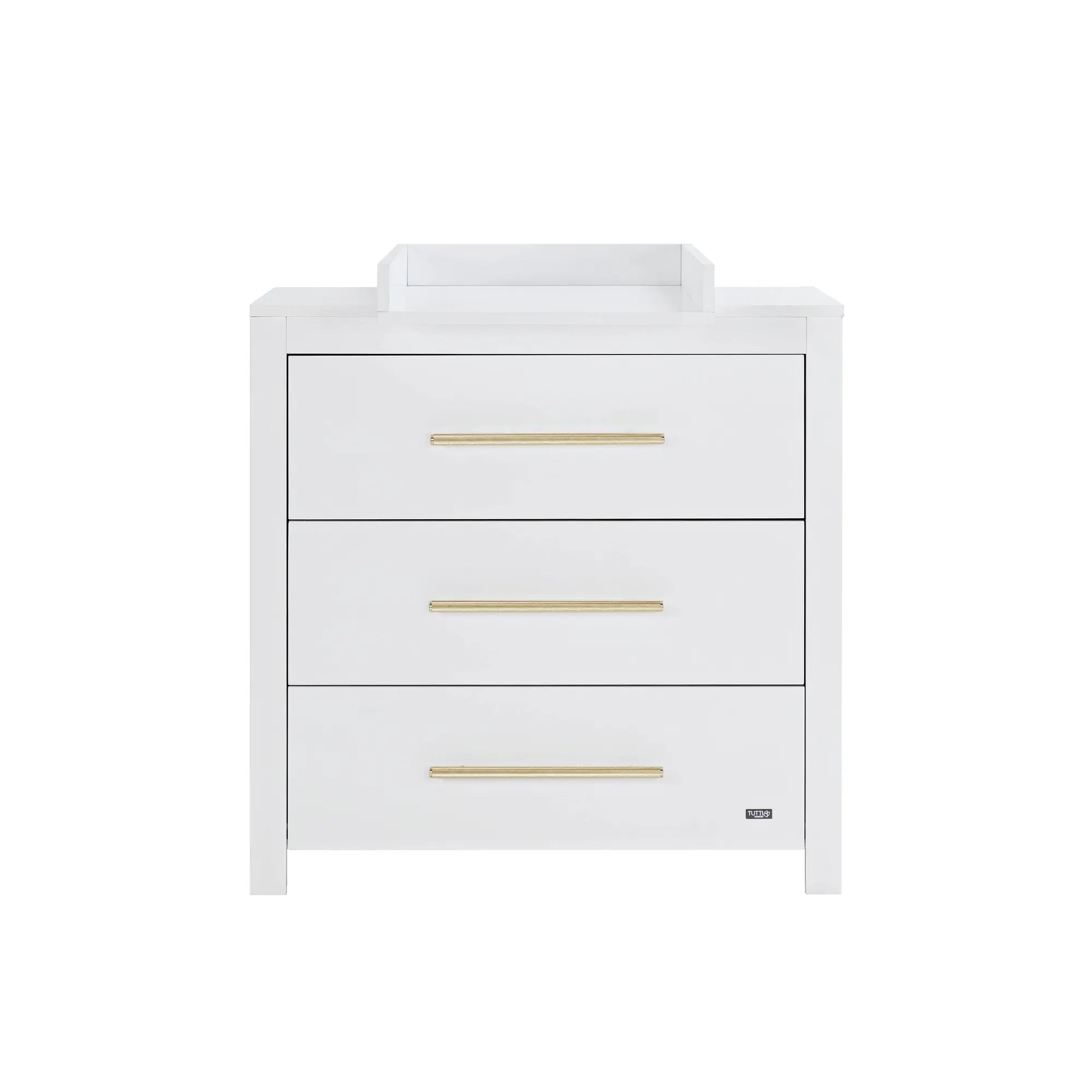The Tivoli Chest Changer offers both style and functionality to your nursery. With its elegant silhouette, sophisticated colour palette, and brushed metallic handles, this chest changer stands out as a versatile and long-lasting storage solution.